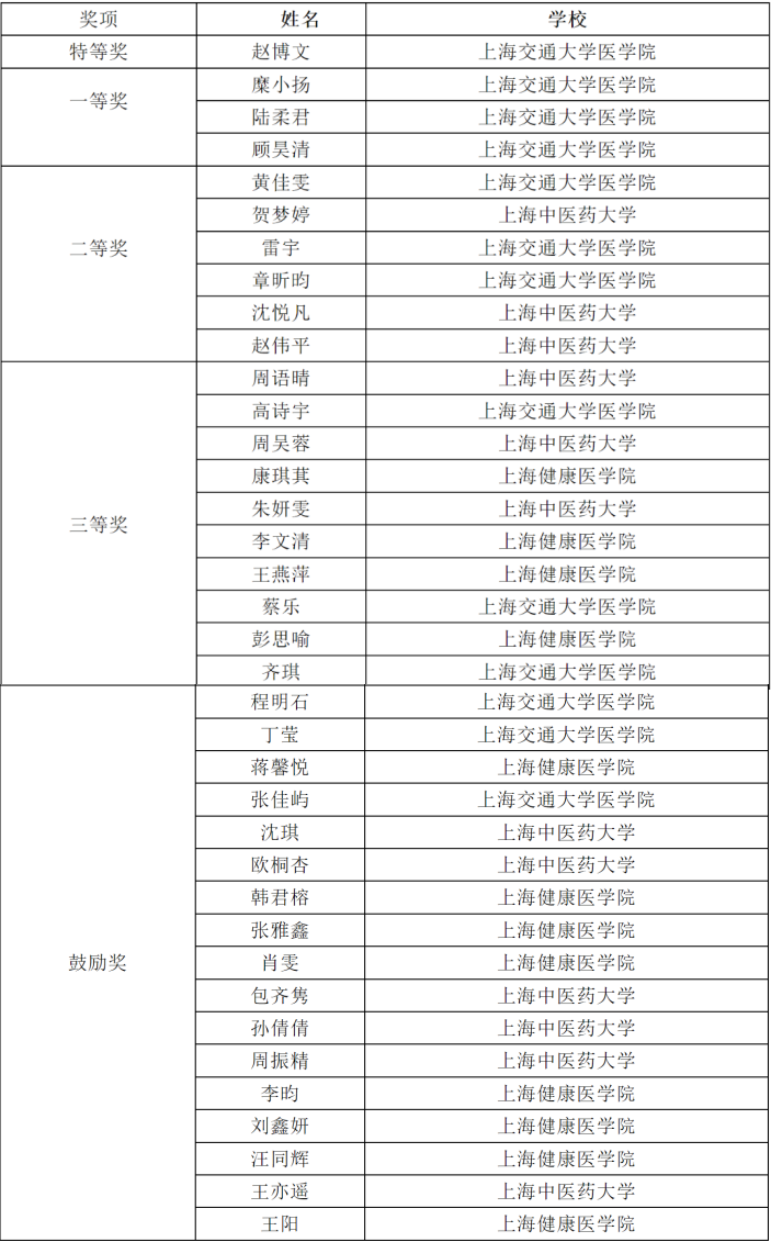暨首届上海市大学生营养专业技能大赛获奖名单