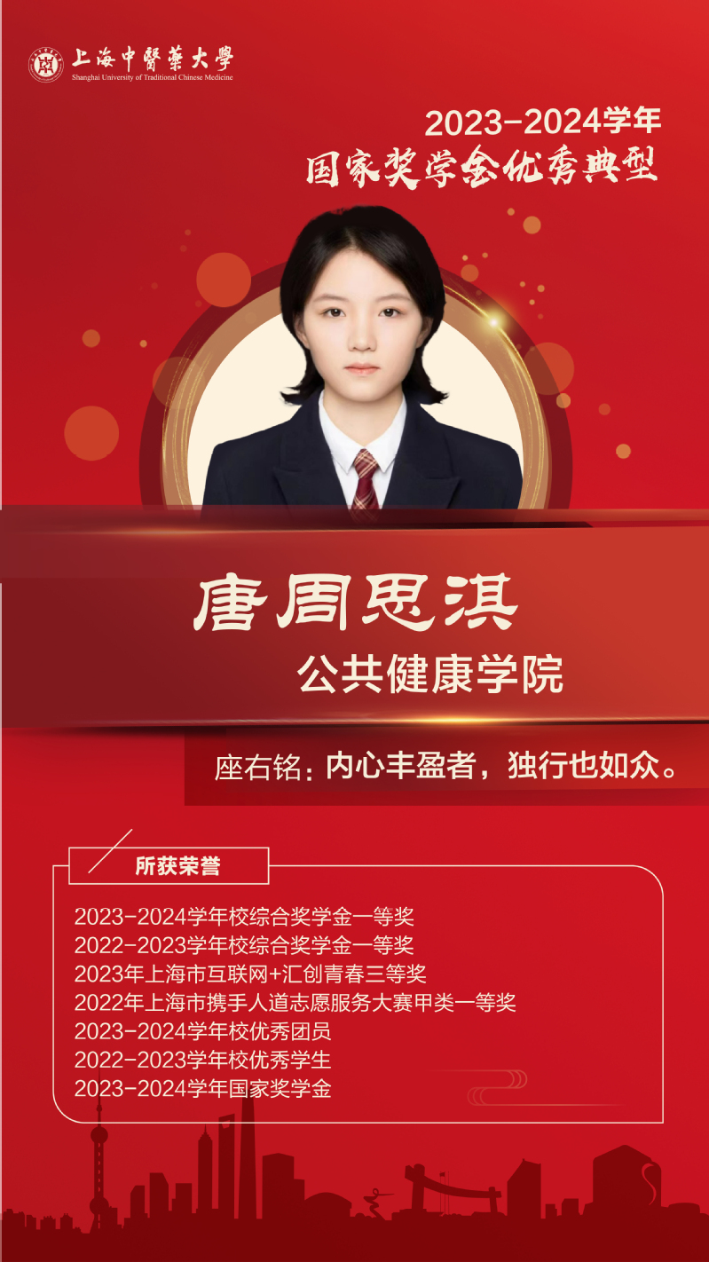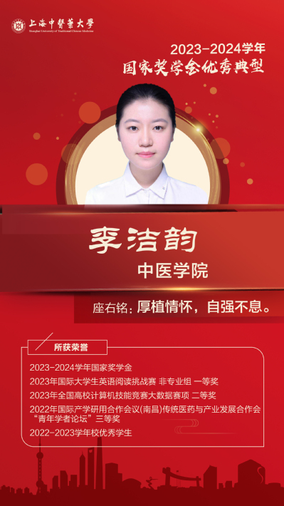 她积极上进,工作认真负责。在学习和科研方面,致力于运用现代AI技术和循证方法,将传统中医理论知识转化为实践,从而探索中医诊断标准化、客观化的有效途径。在校期间以第一作者身份发表论文7篇,其中SCI论文2篇,核心期刊3篇。积极推进中诊创新性科技项目,主持完成上海市创新创业项目1项,授权实用新型专利1项。与此同时,作为STAR共识发展中医药学专科委员会青年委员,参与多部中医药相关报告规范、指南/共识的设计讨论与撰写工作。课业之余,不定期更新自主运营的“李米医学英语”微信公众号,使使用中、英双语讲解传播有意思的医学科普知识。医学研究的魅力在于它既能包容创新与探索,又始终坚持严谨与求实。她将带着这份信念,继续探索前行。