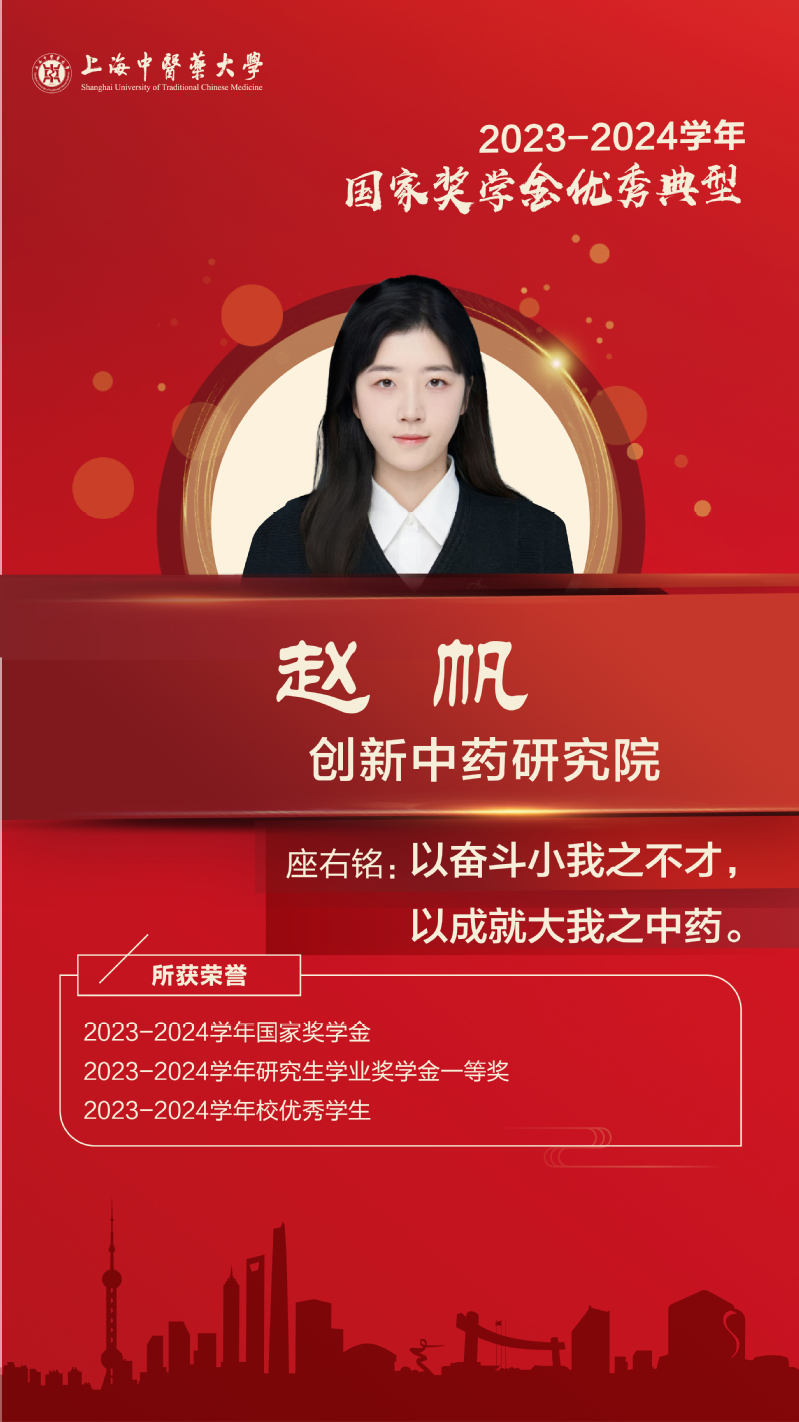作为一名中共党员,思想上要求进步,社会责任感强,积极参与到2024年中国国际进口博览会、第19届中国药师周等多项志愿活动中。具备自主科研、独立从事科学研究、撰写本领域的学术论文的能力,硕士期间在CELL PRESS系列期刊Trends in Cancer 发表SCI论文Modulating β-catenin homeostasis for cancer therapy,自主承担课题并以第一作者独立撰写了“山竹醇靶向RPN6抑制蛋白酶体及抗肿瘤活性研究”。