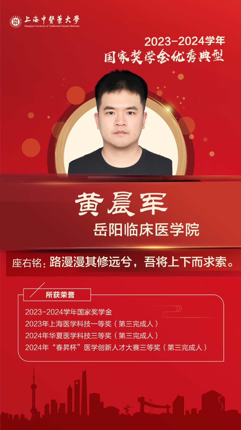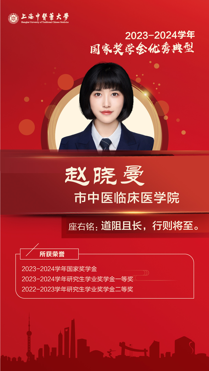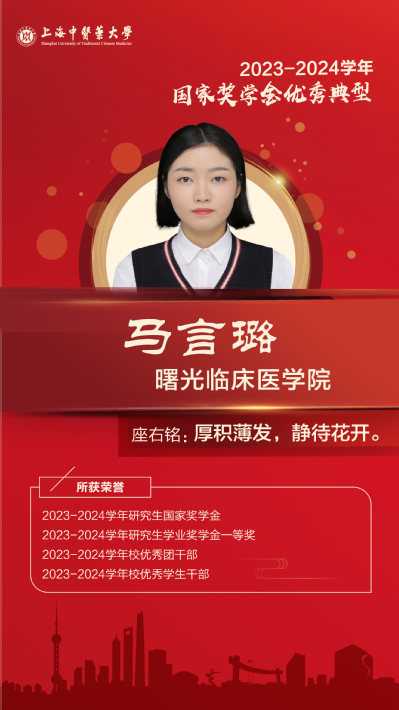 入学以来,参与了多个具有重要意义的课题研究,目前已发表两篇高质量学术文章。一篇发表在《北京中医药大学学报》,于 2024 年 1 月顺利见刊;另一篇在国际权威期刊Phytomedicine上发表。积极参加上海市研究生学术论坛,荣获了优秀论文二等奖,踊跃参与经典诵读大赛,获得三等奖。荣获国家奖学金 1 次,研究生学业奖学金二等奖1次。每学期积极参加南京路上好八连志愿服务活动,作为研究生第七党支部组织委员,积极组织并认真开展上级党组织分配的各项任务。