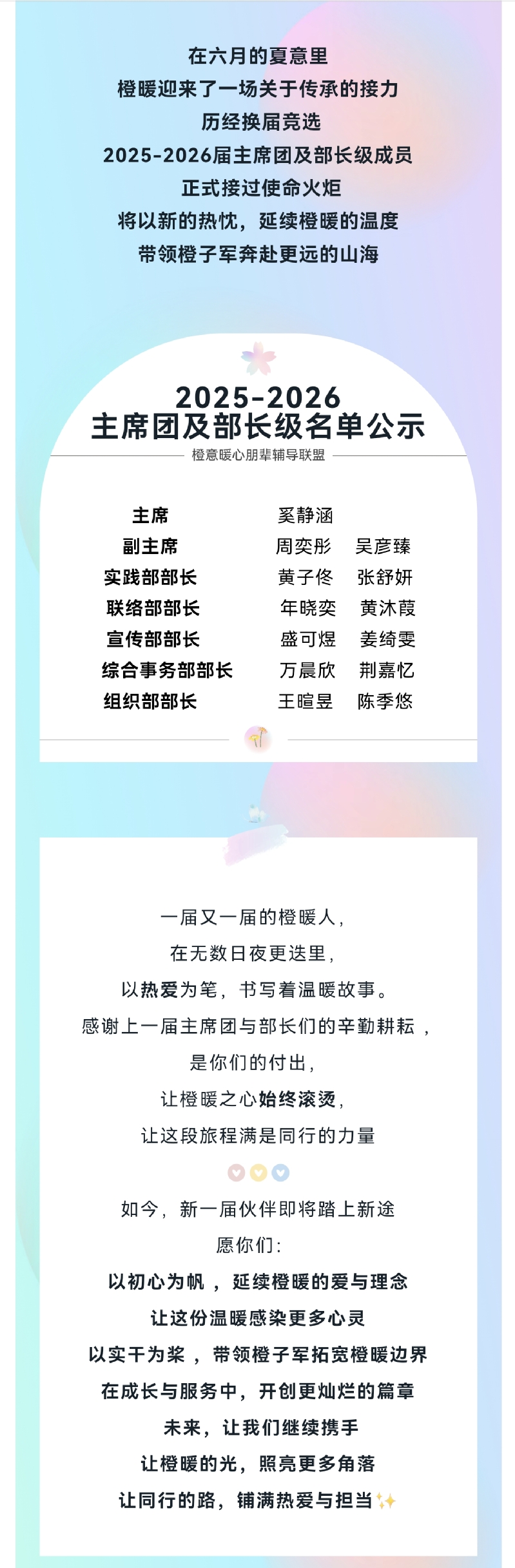 【心快讯】“新橙启,爱与光同赴”——2025橙暖换届人员名单公示