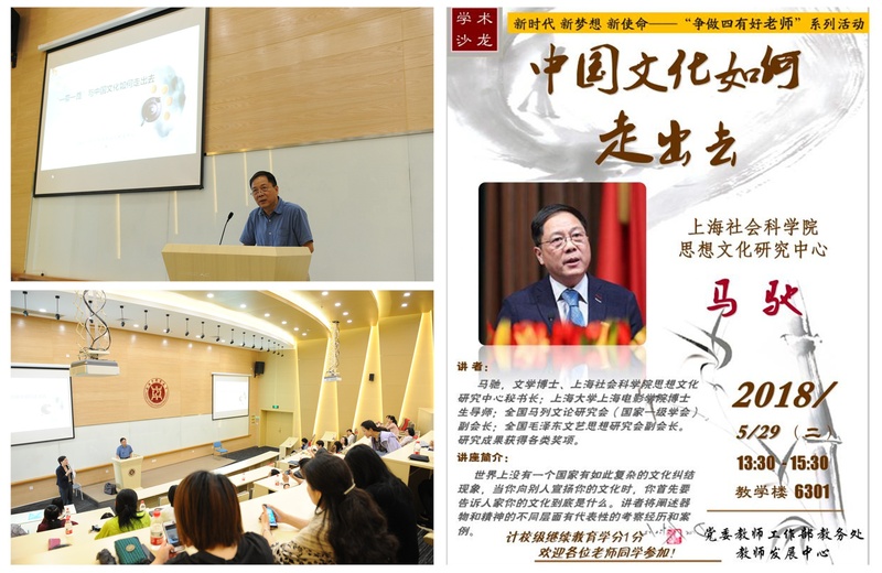 5月29日下午,上海社会科学院思想文化研究中心秘书长马驰教授受邀来我校为师生主讲“一带一路与中国文化如何走出去”。