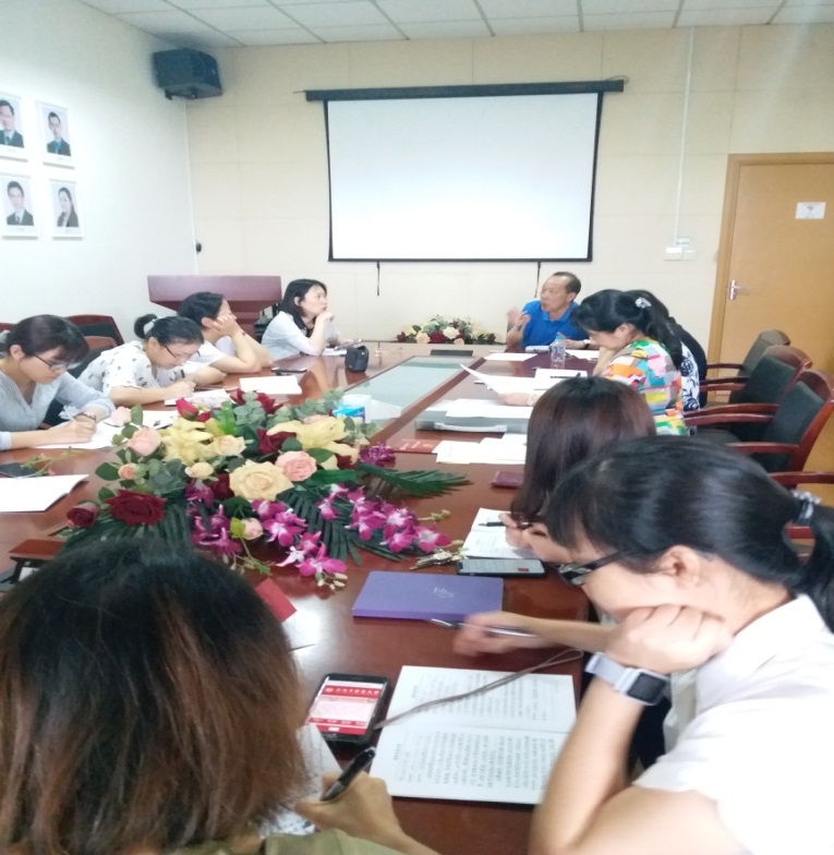 2018年6月20日中午,教工二支部安叡、沈岚、陶建生、尤丽莎、曹姣仙、王莹、王又闻、马斯怡、夏瑜桢、赵继会、郭腾、梁琨、袁满、叶红、彭春花、何丹丹等老师围绕“立德 修身 精业 笃行”,对习近平总书记提出的要求广大教师要做“四有好老师”,做学生的“四个引路人”,教育工作要做到“四个相统一”,开展了深入的探讨,表达了各自的感受。