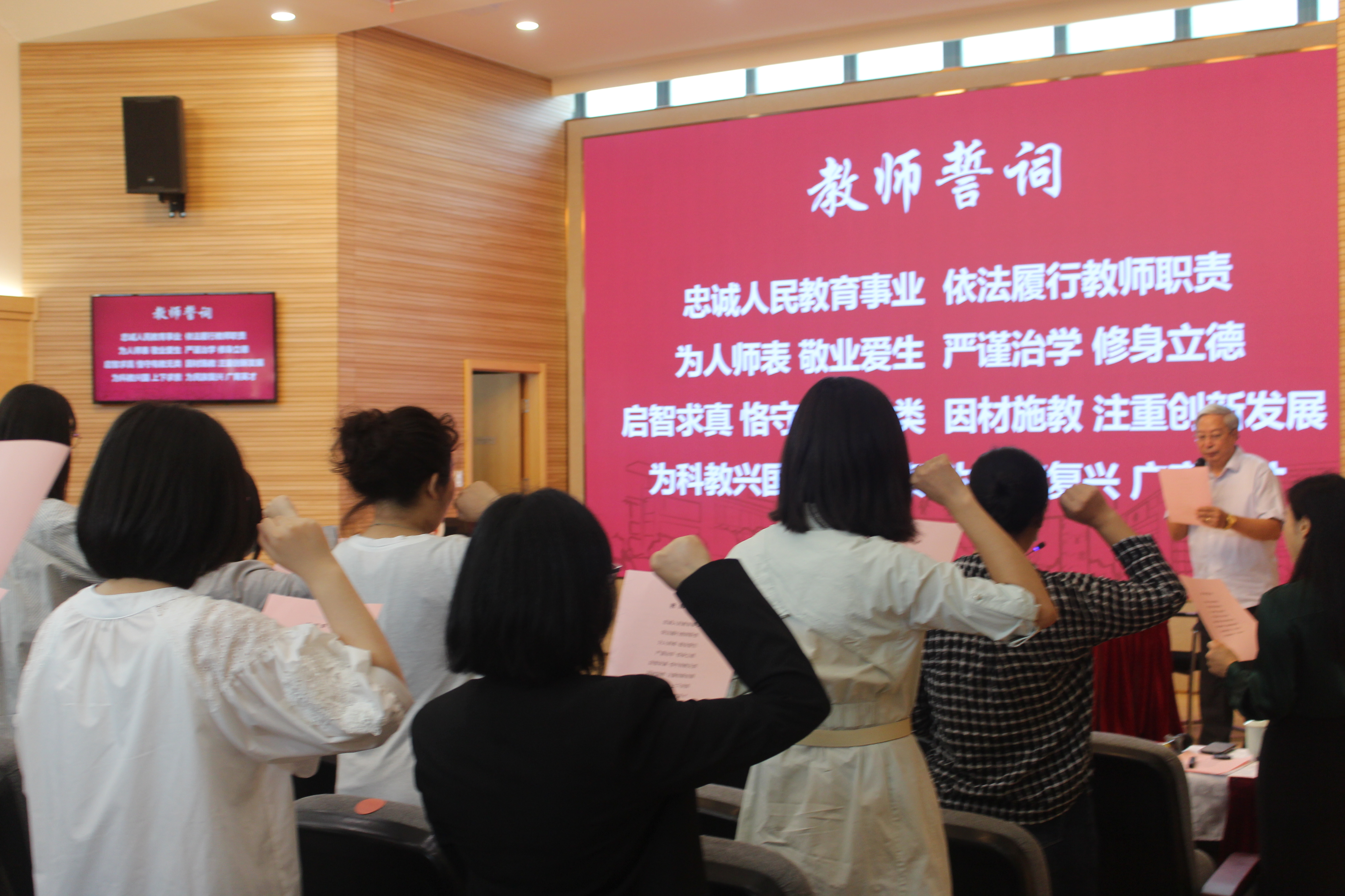 活动在庄严宣誓中拉开帷幕。我校终身教授李其忠带领在场全体教师举起右手,共同宣读教师誓词:“忠诚人民教育事业,依法履行教师职责。为人师表,敬业爱生;严谨治学,修身立德。”通过入职宣誓、师德承诺等仪式教育,进一步增强了教师教书育人的责任感、使命感和荣誉感。