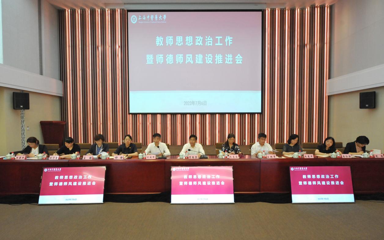 7月6日下午,我校教师思想政治工作暨师德师风建设推进会在科技创新楼一楼会议室召开。校党委书记曹锡康,党委副书记、副校长朱惠蓉,党委副书记、纪委书记许铁峰,副校长王拥军、舒静,校教师思政工作指导委员会、师德建设委员会全体委员,教师党支部书记和相关教师代表等80余人参加会议。会议由许铁峰主持。