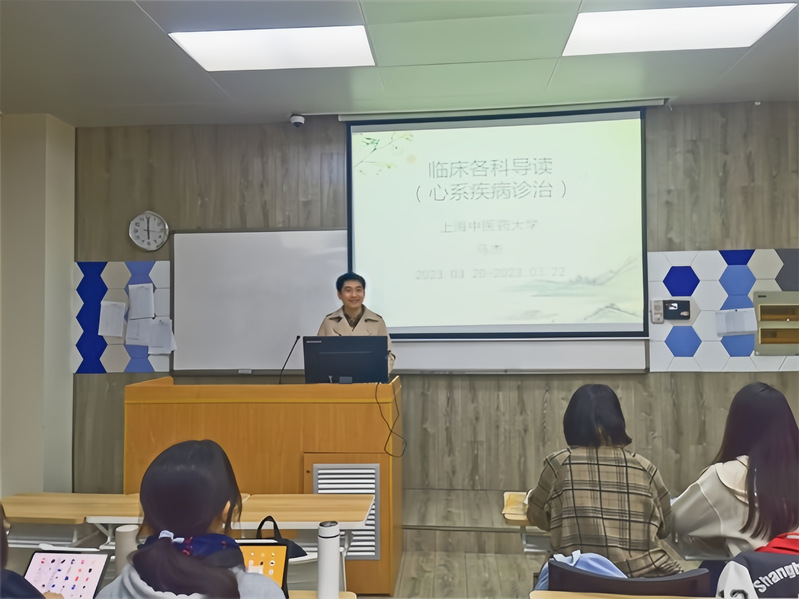 他教导有方、诲人不倦,在教育一线推进病证结合教育实践,将第一课堂与第二课堂结合,将“价值-知识-技能”融合统一。2023年3月,“病证结合推动中西医融合发展”学术研讨会上,大会发布了《推动中西医结合诊疗模式创新上海倡议》。为了推进病证结合教育实践,在《临床各科导读》课上,马老师结合一则则真实案例,引导我们用病证结合的方式思考诊断和治疗,同学们深受启发。马老师还带领学长学姐们一起参与编写《中医药服务评价研究与实践》与三册《中医治未病工程系列丛书》。马老师时常教导我们,要注重精修内功与勤练外功并行,做到内外兼修。同学们扎实的专业功底是志愿服务的基石,为了引导同学们掌握扎实的专业功底,马老师来到服务队开设专题讲座,在课堂内外向同学们传授临床心得。