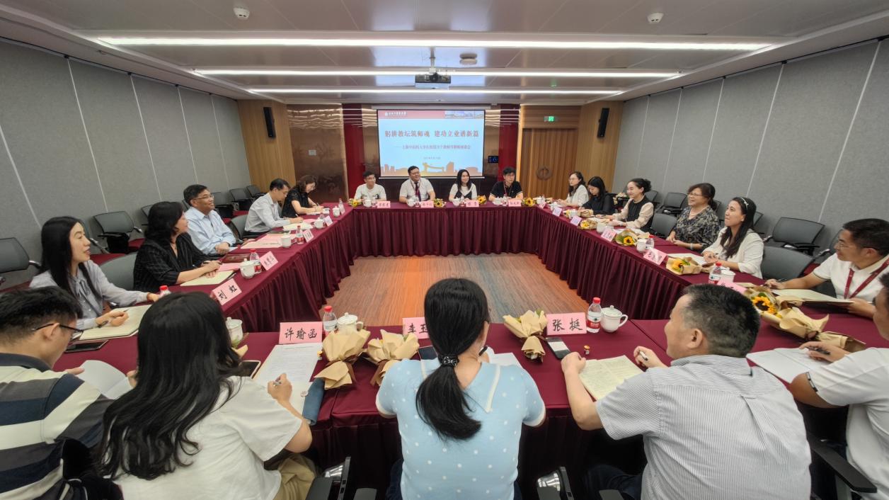 为学习宣传贯彻《关于教育系统学习贯彻习近平总书记教师节重要指示精神的通知》精神,9月13日,学校以“躬耕教坛铸师魂,建功立业谱新篇”为主题,在中医药国际标准化研究中心辅楼206会议室召开庆祝第39个教师节教师座谈会。校党委书记曹锡康、党委副书记许铁峰及相关职能部门负责人,“上海工匠”、全国高校教师教学创新大赛获奖者代表、2023年上海市哲学社会科学教学科研骨干研修班学员、教师党支部书记、青年教师班主任、新进教师代表等20余人参加座谈。会议由许铁峰主持。