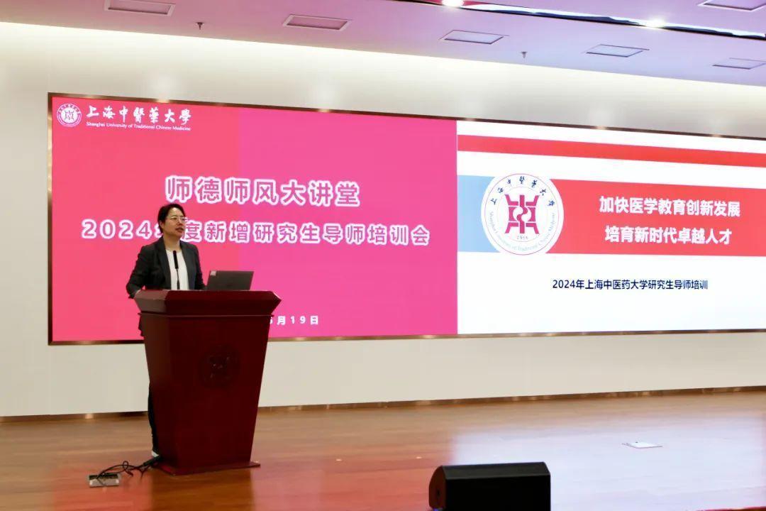 为全面贯彻党的教育方针,落实导师立德树人根本任务,加强研究生导师队伍建设,提高研究生培养质量,我校研究生院和党委教师工作部于6月19日上午在中医药国际标准化大楼报告厅联合举办师德师风大讲堂暨2024年新增研究生导师培训会。副校长舒静,相关职能部门负责人,拟新增研究生导师251人参会。会议由研究生院常务副院长刘胜主持。