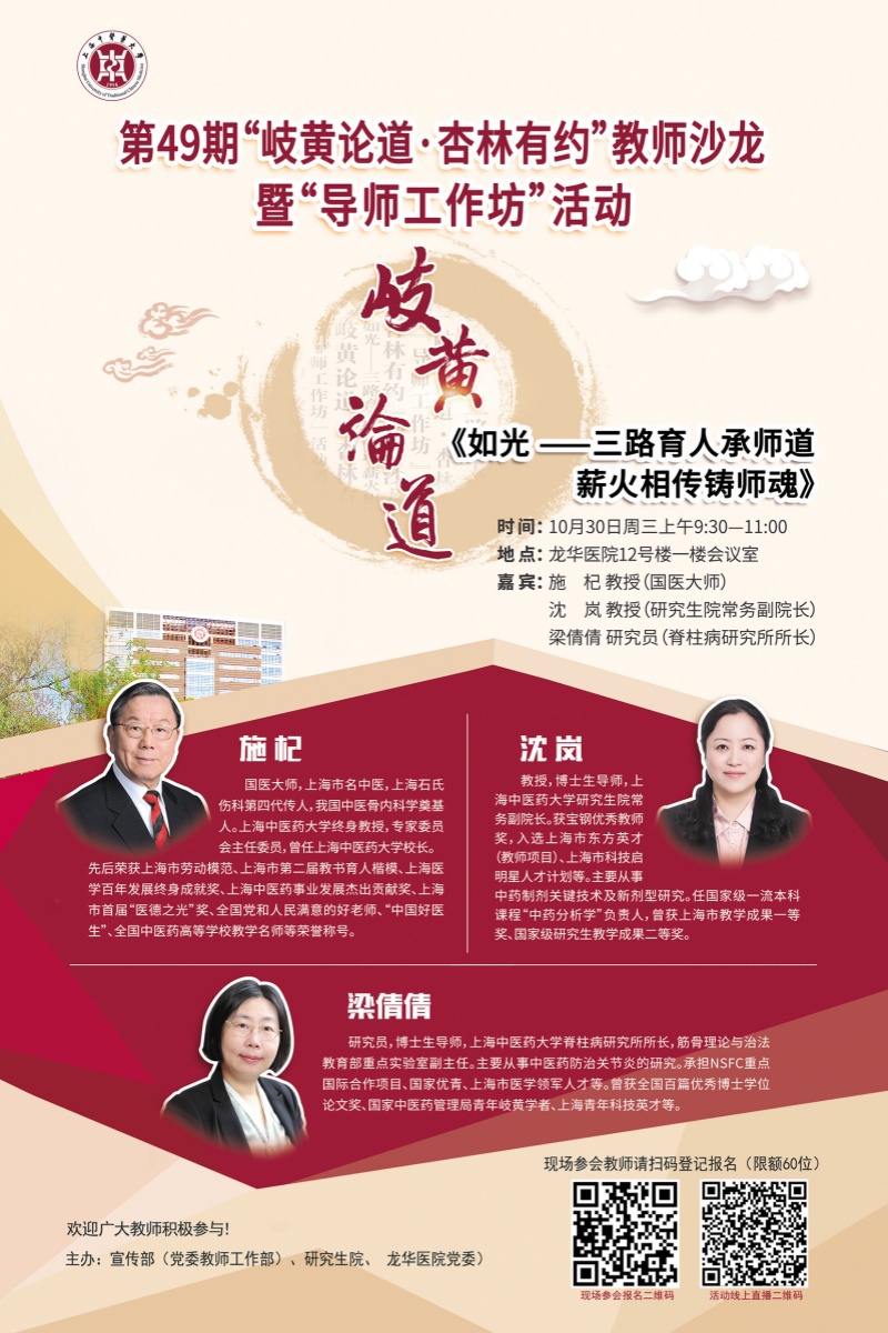 活动通知:第49期“杏林有约”教师沙龙【三路育人承师道 薪火相传铸师魂】