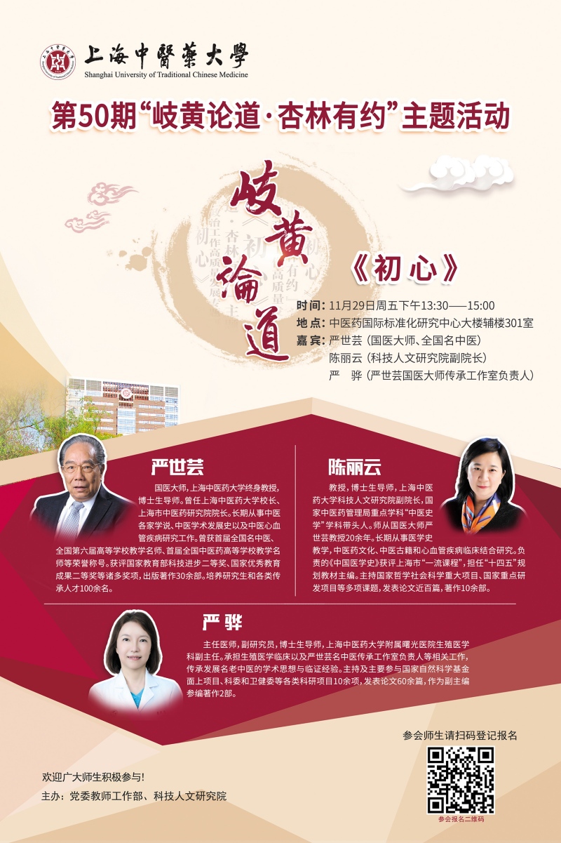 活动通知:第50期“岐黄论道·杏林有约”主题活动【初心】
