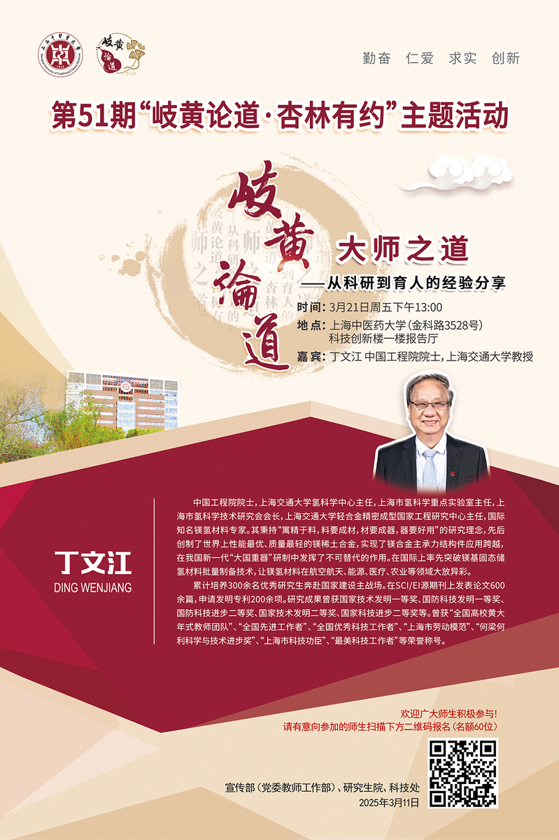 第51期“岐黄论道·杏林有约”【大师之道:从科研到育人的经验分享】