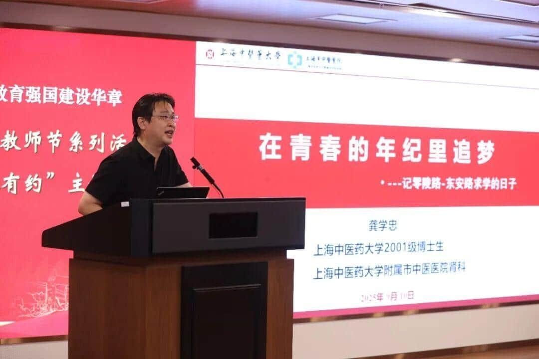 9月10日,我校庆祝教师节系列活动之第55期“岐黄论道·杏林有约”在中医药国际标准化研究中心辅楼201会议室举行。本期活动以“从母校启程·向岐黄深耕——传承与创新”为主题,特邀三位获得“青年岐黄学者”称号的优秀校友重返母校,与昔日恩师同台话成长、叙师恩、论创新。校党委书记曹锡康、副校长舒静,相关职能部门、学院负责人及百余名师生代表共同聆听这场跨越三十年的“杏林接力”。