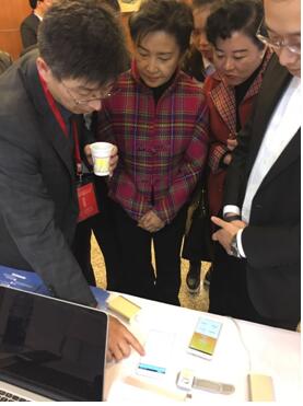 中心团队负责人许家佗教授为洪司长介绍脉诊手环的应用