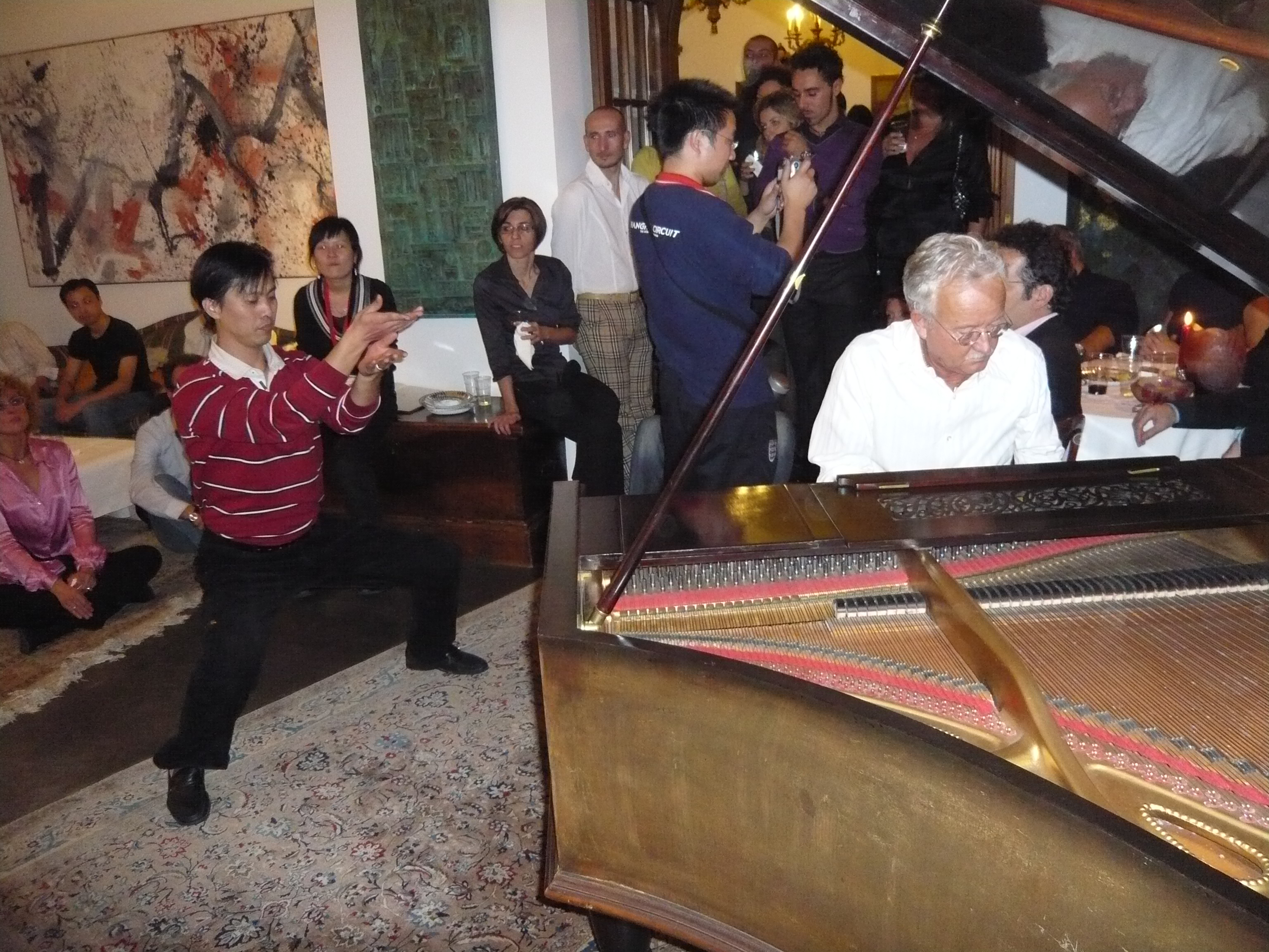我部冯金瑞老师主要负责参与了中医展区的其中一个展位——传统功法。在展会期间,冯老师根据不同的参观人员做了不同内容的介绍讲解、示范及现场教学,向小朋友们讲述和展示了具有传奇色彩的中华武术;向中老年人宣传和示教了具有悠久历史和文化的中医养生功法,让不同年龄层次的市民们都在互动的过程中更加体会到了传统功法的神奇与魅力。在整个展示过程中,传统功法展位前的市民总是络绎不绝,老师也总是乐此不疲的为大家展示和现场传授。在主办方组织的参展人员的party 上,老师还附着钢琴演奏家的音乐节拍,即兴为与会人员表演起了传统功法。
