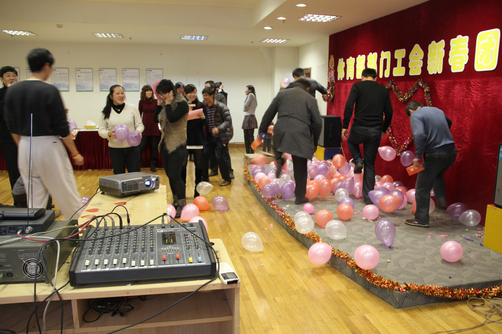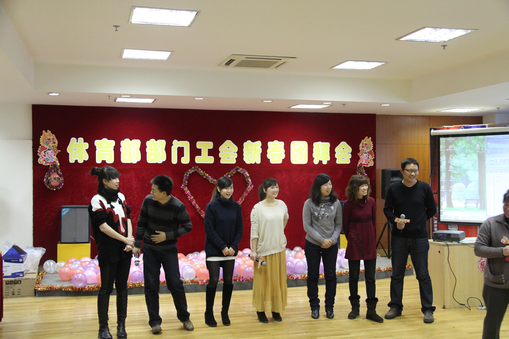 2011年12月30日,体育部部门工会隆重举行2012年新年团拜会,体育部全体教师欢聚一堂,大家怀着喜悦的心情,一起辞旧迎新,共同观看了精彩的文艺表演。