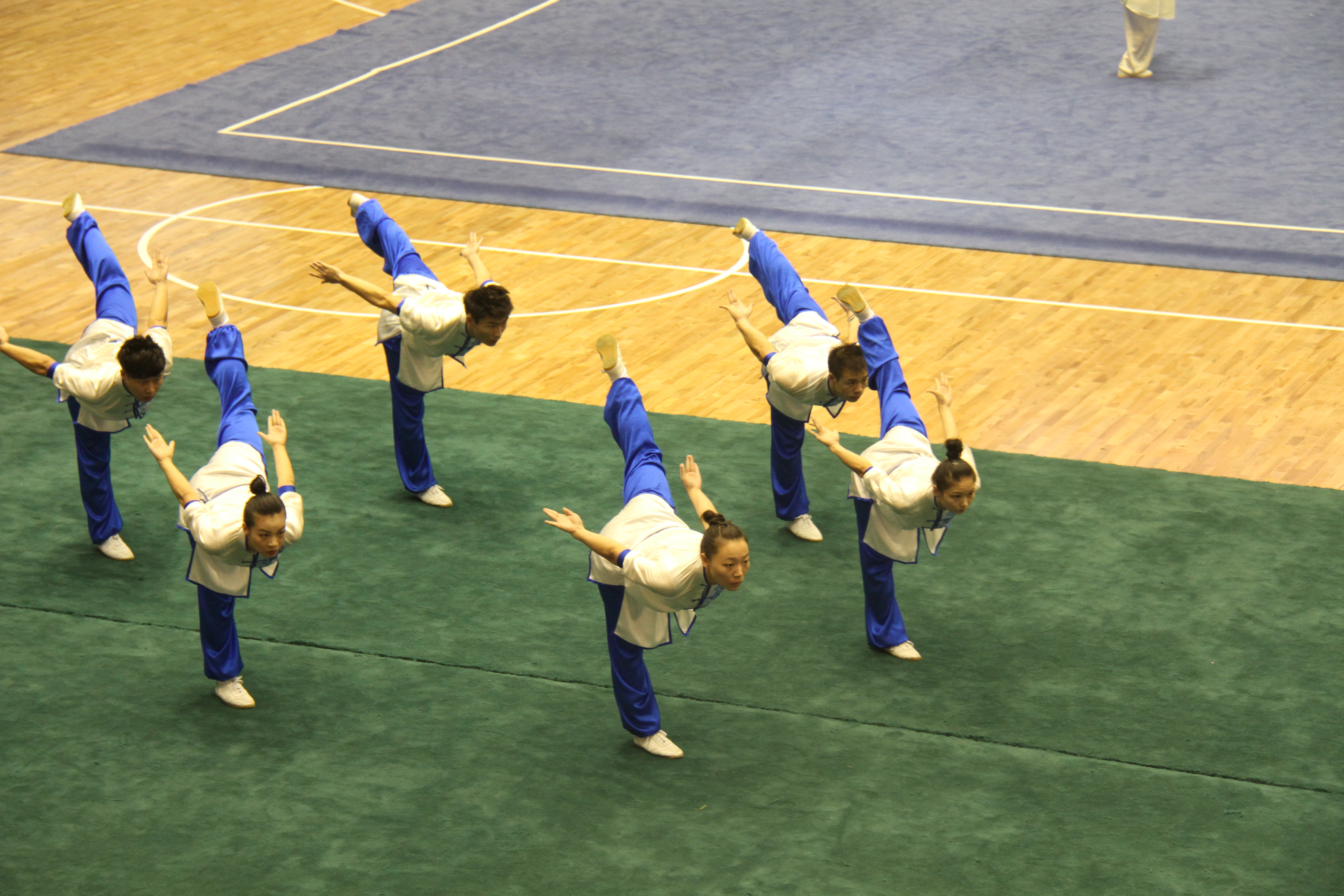 我校武术队员赛场拼搏,集体功法比赛五禽戏—鸟戏