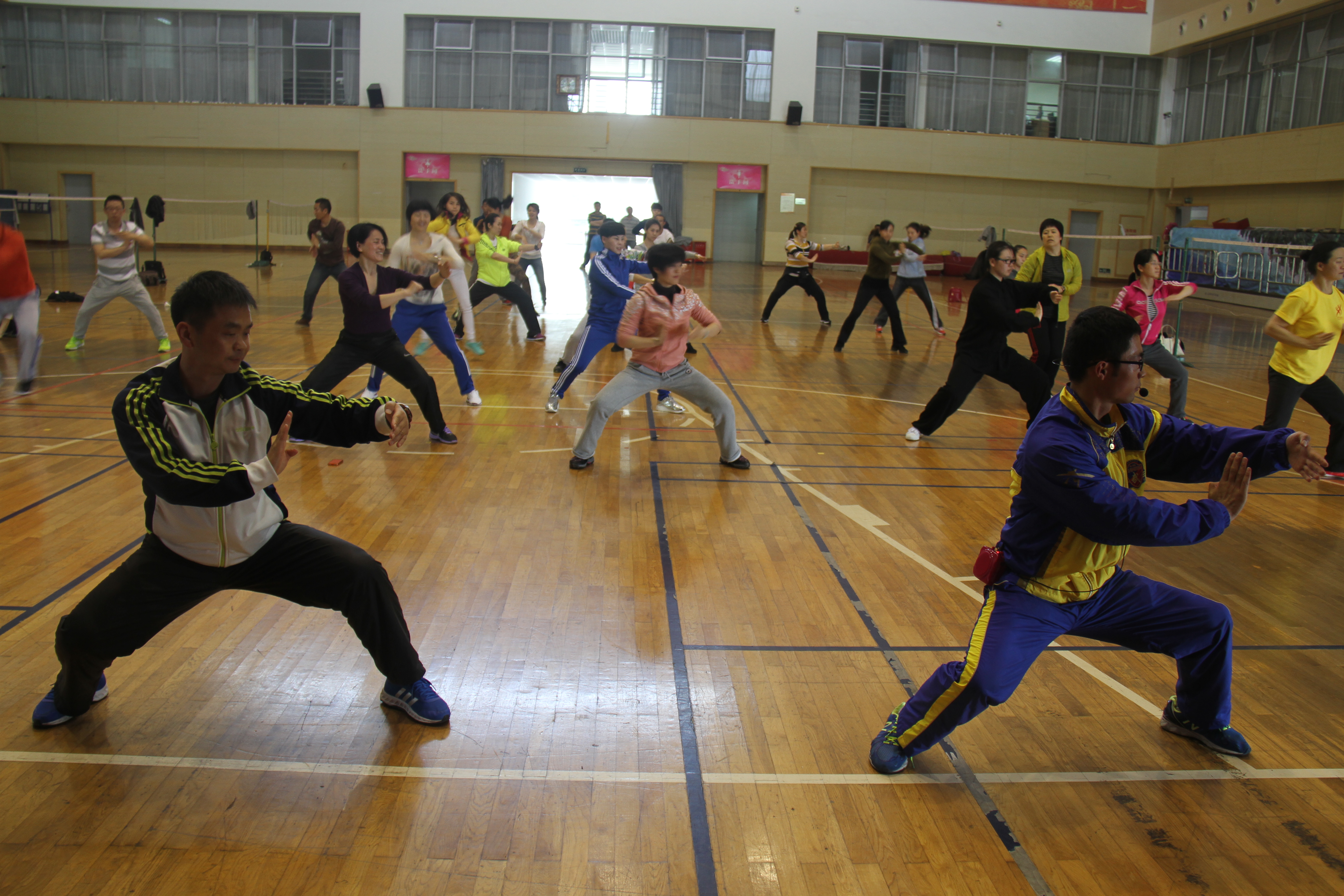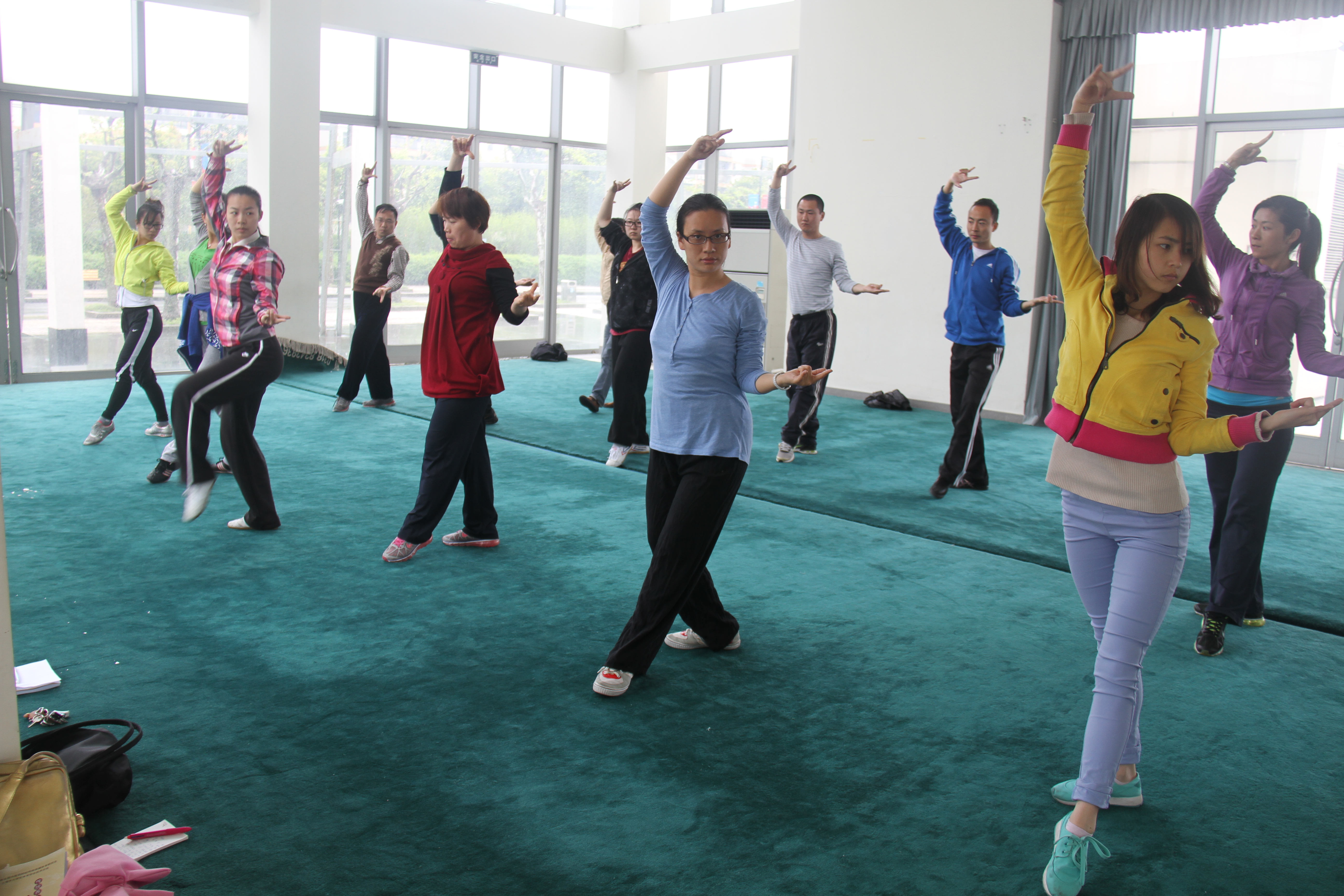 为贯彻落实《中医药事业发展“十二五”规划》要求,全面推进中医药院校养生功法的发展,以及推动中医养生功法在上海高校的普及,我校于2014年4月9—14日成功举办全国中医药院校及上海市高校养生功法教练员、裁判员培训班。这次培训班共有23所全国中医药院校、14所上海市高校约70人参加了培训,培训内容主要为五禽戏、八段锦、易筋经、七星功、功夫扇、武术拳操等养生功法。