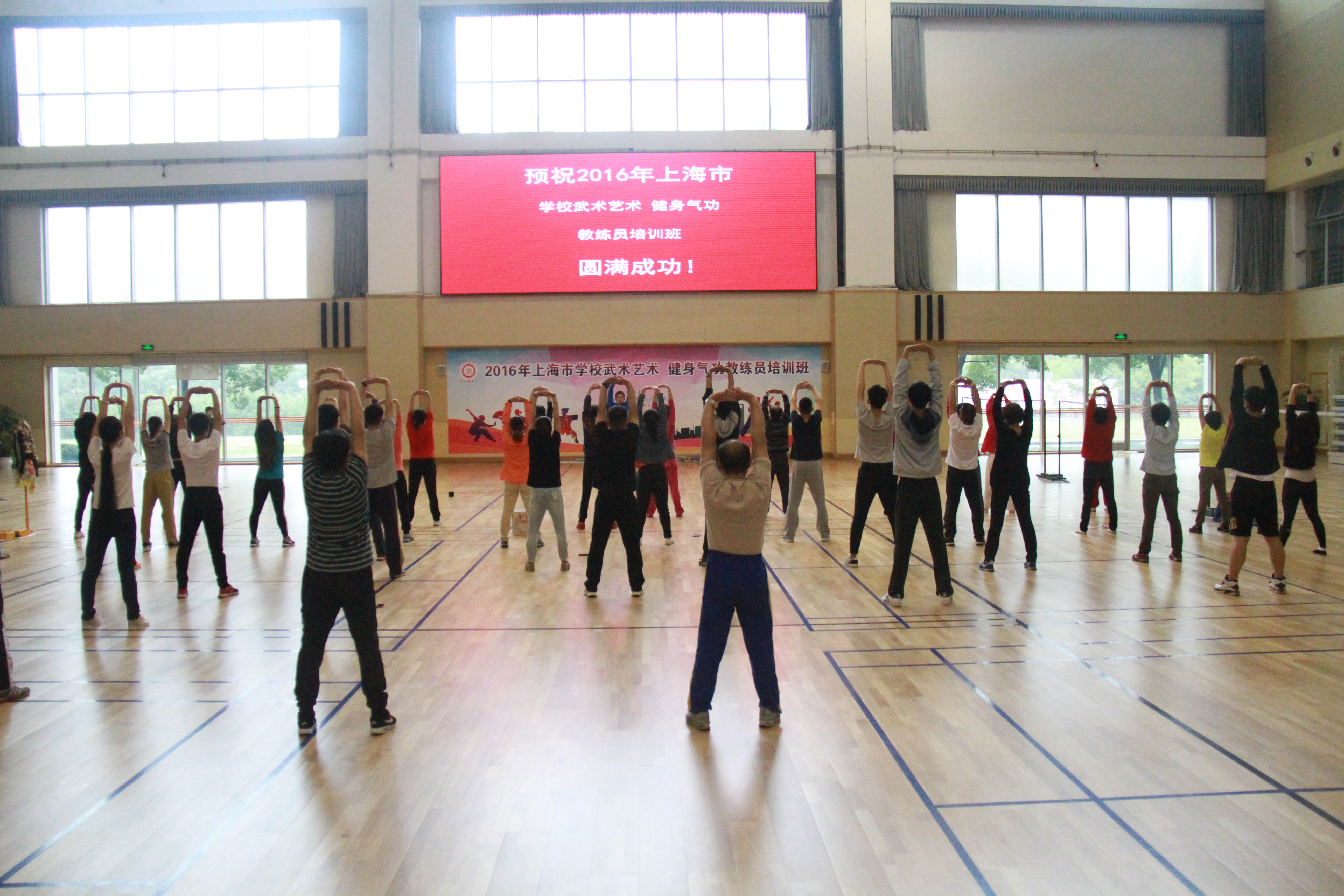2016年10月21日上午9点,2016年上海市学校武术艺术、健身气功教练员培训班在我校拉开帷幕。上海市大学生体育协会武术分会秘书长吴志坤、上海市大学生体育协会武术项目官员陈剑昌、上海武术院业务科科长梅文源分别致辞,希望通过本次培训活动,在上海市大中小学的校园内,加快推进武术艺术、健身气功项目,达到增强学生体质,传承中华体育文化的目的。