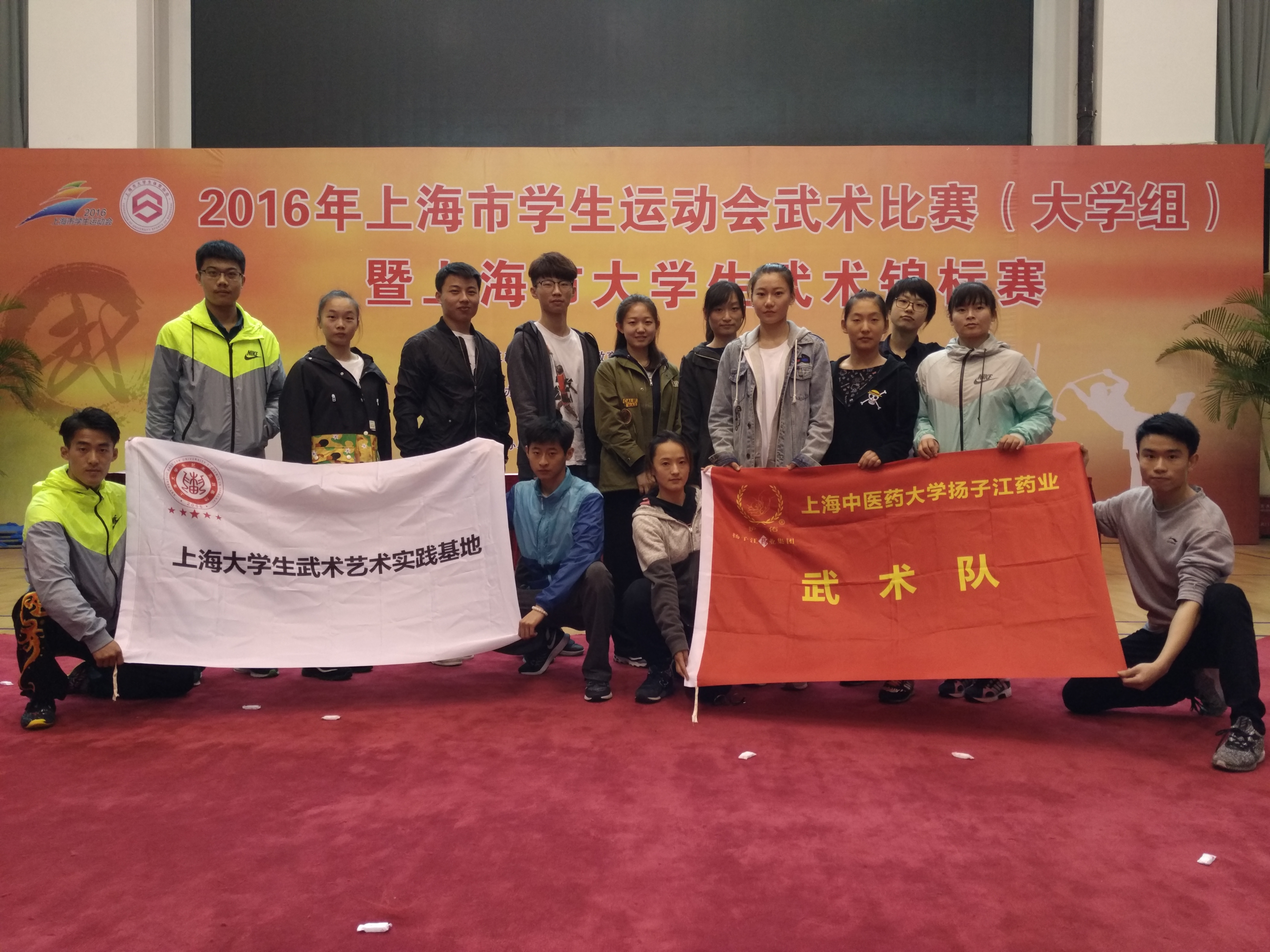 2016年11月12日上海市学生运动会武术比赛(大学组)暨上海市大学生武术锦标赛在我校隆重举行,来自上海17所高校的100多名运动员参加了此次武术比赛。比赛分为甲组和乙组,乙组运动员们作为高水平运动员有良好的心理素质、技术过硬,将武术的精气神在运动员身上体现的淋漓尽致。而作为非专业运动员的甲组运动员同样的技术娴熟,完美展示自我。