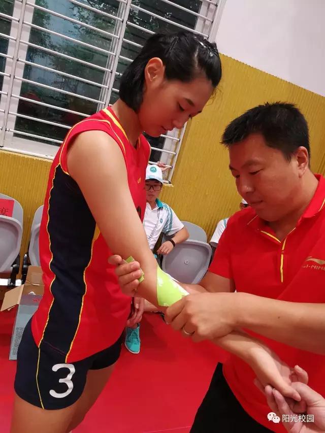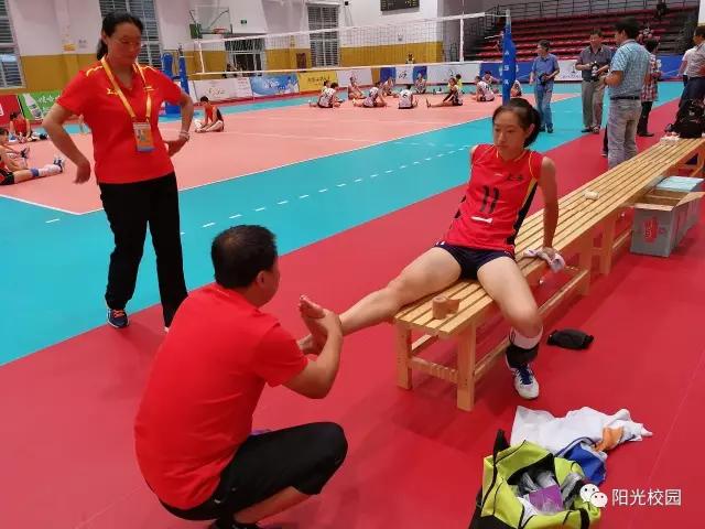 9月9日晚上10点半,在从田径赛场回来的路上,医疗保障团队接到了电话,参加高中组女排比赛的上海队员蒋亦颖在训练中脚不慎踩到了队友身上导致扭伤,医院拍片显示没有骨折,但却疼痛难忍,急需医疗保障。由于蒋亦颖是队伍里的主力二传手,并且能够胜任这个位置的只有她一个人。因此,团部决定让医疗保障团队进行全力保障,力争让她参与第二天的比赛。凌晨接到团部指示之后,医疗保障团队立刻放弃睡眠赶到运动员入住宾馆为蒋亦颖进行治疗。经过会诊,侯希贺认为是外踝扭伤、伴有水肿,于是就为蒋亦颖进行了推拿复位与止痛的处理,并通过绷带进行包扎。在医疗保障团队的努力下,第二天蒋亦颖神奇地站上了赛场,并且还打满了全场。