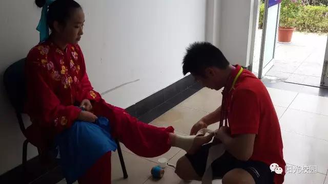 大学组武术比赛前,上海武术运动员庞雅元在来杭州的前一天左脚脚踝扭伤,导致左脚一度无法落地。这可让武术队主教练陆松廷感到压力重重,因为庞雅元不仅有两项个人单项比赛,还有武术集体项目的比赛要参加,如果缺席将影响到整个团体的比赛成绩。