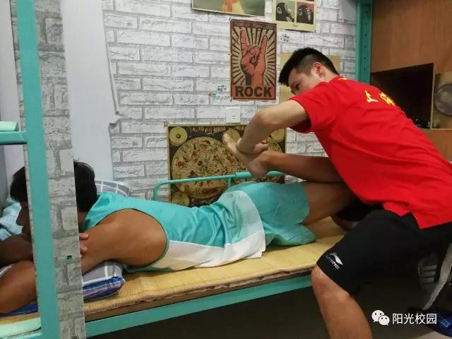 随着本届全国学生运动会比赛项目的逐步开展,目前四名医疗保障团成员每天都会兵分四路,奔赴不同的赛场,他们每个人每天至少要对两到三场比赛做医疗保障。当他们累了、疲劳时,就会互帮互助,为彼此进行推拿和康复。当需求量大,人手不足时,他们彼此通个电话,就会互相补位、相互支援。
