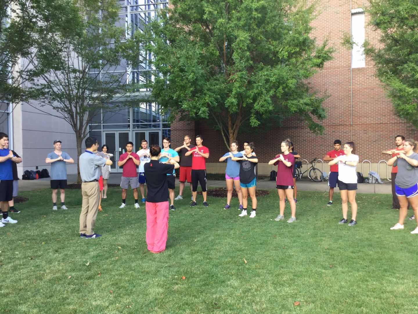 期间,我部康萌教师在奥古斯塔大学分别为物理治疗专业博士班、当地社区居民、华人社团代表等讲授太极拳和健身气功。她教学方法灵活多样、示范动作一丝不苟,学生们大开眼界。近三年来,在康萌的教学交流带动下,太极拳、气功等中华传统武术在奥古斯塔大学学生中普及程度不断提高,在社区居民中间也作为一项重要的养生保健体育项目广泛开展。