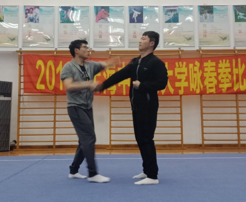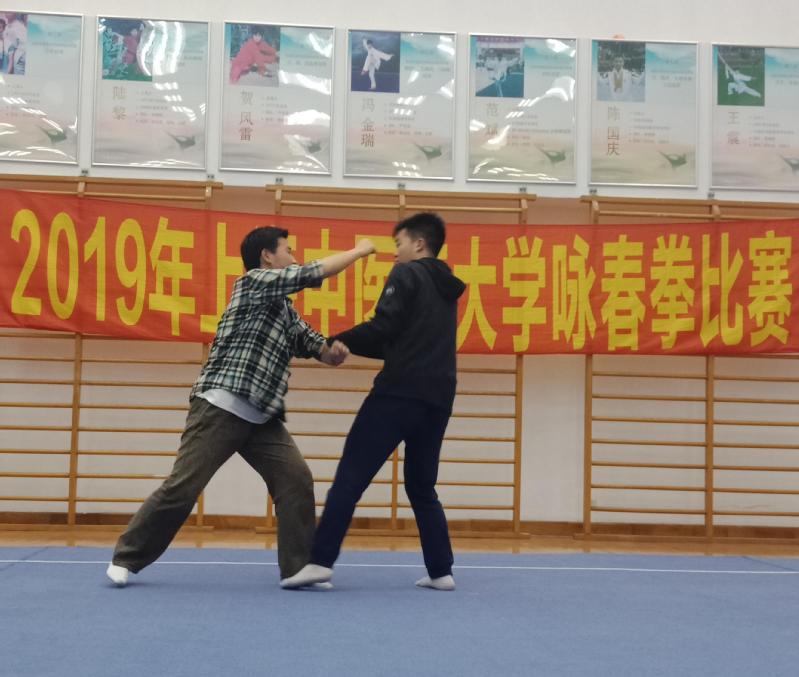 我校武术艺术基地咏春队教练王宾首先做了赛前动员,鼓励同学们赛出成绩,赛出水平,赛出风格,同学们在老师慷慨激昂的陈词中斗志高涨,随即,比赛正式开始。