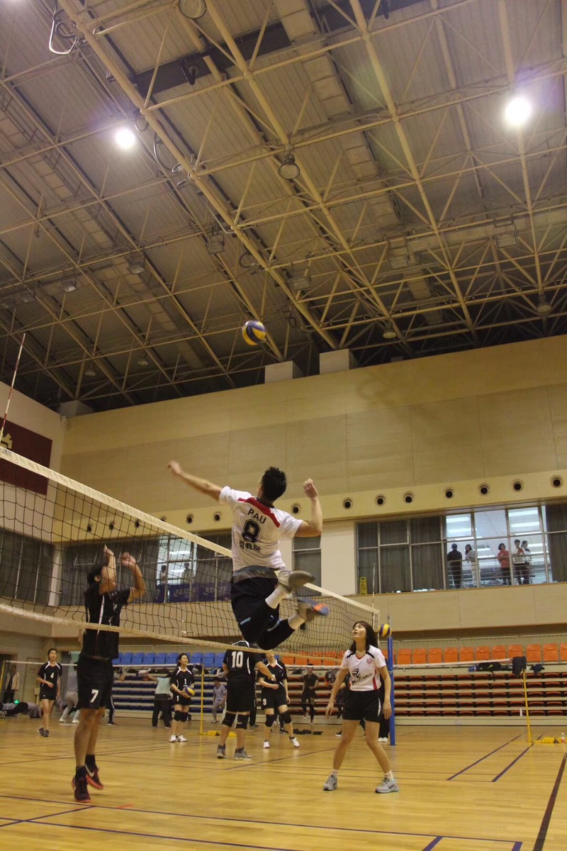 室内总是充满呼喊声的竞赛氛围,可能是因为室内较为密闭,每一次加油声总感觉在心底回荡,每一次都希望将心底浩瀚的力量散发出来,在这个排球场上宣散自己的勇气和力量。室内的排球场更多了一分竞赛的严格性。每一次比分的翻阅总是抓人眼球,每一次救球都让人心弦绷紧,你永远不会想象到一个人的身躯可以在地板上快速跪滑移动只是为了将一颗球接住。我想每一个球的背后大概都有膝盖上或轻或重淤青的痕迹吧。每一场比赛都紧张而有魅力,共同激励的伙伴们在排球场上用自己的努力为队友提供下一颗球的机会,每一支队伍的后援团也用尽全身的力气呐喊。此时,欢呼和掌声永不停歇。