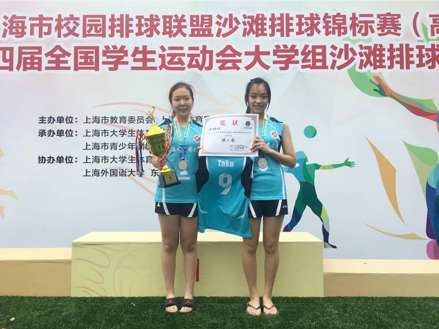 我校沙滩排球队(普通生)由体育部主任吴志坤老师担任领队,在龚博敏和蔡增亮两位教练的指导下,来自中药学院的队员孙崇馨和针灸推拿学院的队员赵婧怡克服台风“塔巴”等不利因素环境下,发扬中医学子团结协作、顽强拼搏的精神,小组赛分别战胜上海体育学院和上海海事大学,以小组第一的好成绩昂首进入八强。在淘汰赛中又分别战胜上海师范大学与上海海洋大学挺进决赛。在最终的决赛中憾负于华东政法大学,获得了本次比赛的亚军。本届比赛中我校两名队员发扬顽强拼搏的“女排精神”,赛出水平、赛出风格,赢得了运动成绩与精神文明的双丰收,为学校争得了荣誉。