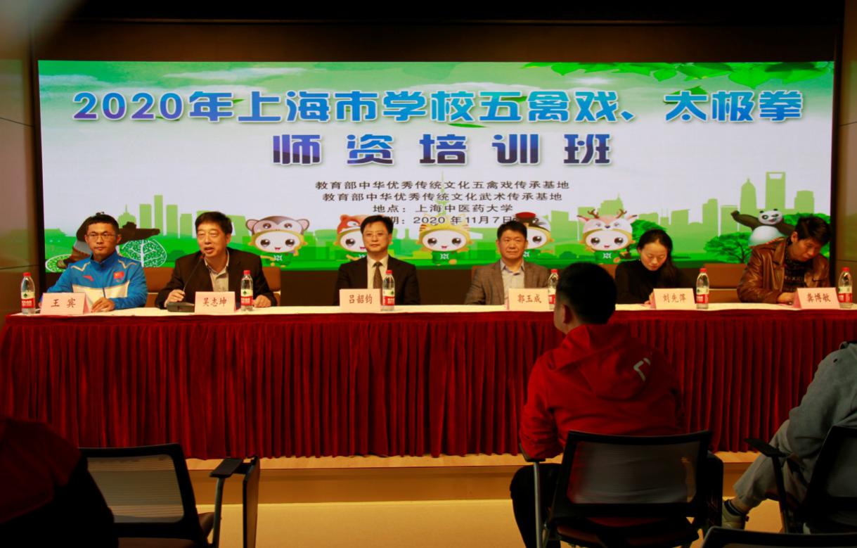 为深入贯彻国务院办公厅印发《关于强化学校体育促进学生身心健康全面发展的意见》、《关于实施中华优秀传统文化传承发展工程的意见》、《体育强国建设纲要》等文件精神,紧紧围绕上海教育综合改革相关要求,进一步弘扬中国传统文化,更好地推动五禽戏、太极拳进校园活动的开展,2020年11月7日,上海市学校五禽戏、太极拳师资培训班在开云电竞官网下载安卓大学生创新创业实践园举行,此次培训由教育部中华优秀传统文化五禽戏传承基地、教育部中华优秀传统文化武术传承基地主办,本次培训共有上海市大、中、小学80余名教师参加。北京师范大学武术与民族传统体育文化推广研究中心主任、博士生导师吕韶钧教授、上海体育学院武术学院院长郭玉成、开云电竞官网下载安卓体育部主任吴志坤、开云电竞官网下载安卓体育部党支部书记龚博敏、上海体育学院武术学院办公室主任刘先萍出席此次开班仪式,吴志坤主任致辞。