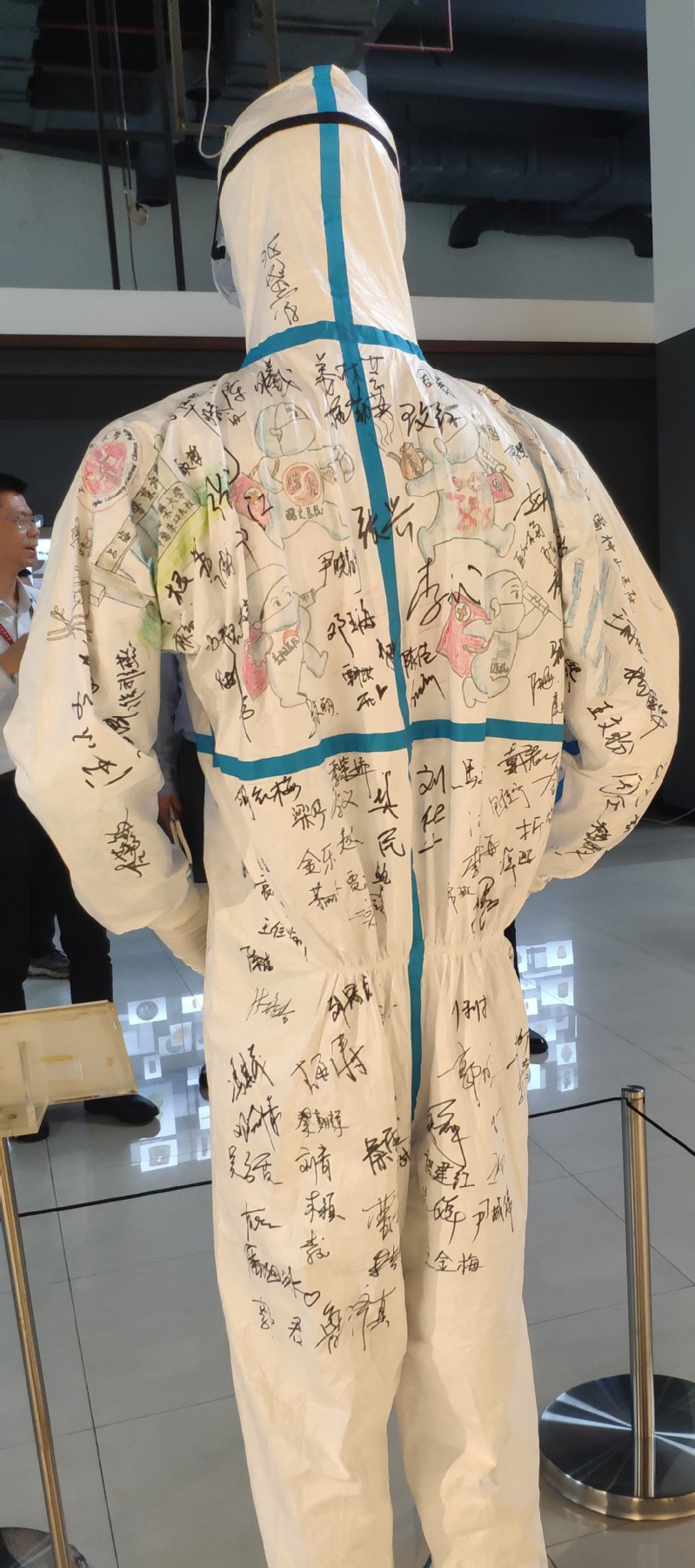 现场作品多样,包括抗疫一线物资、书法等,作品凝聚了作者对抗击疫情英雄的崇敬之情,对伟大的党和祖国的深深祝福。通过讲解员讲述作品背后的故事,在场党员同志纷纷向“抗疫精神”致敬,向英雄致敬。