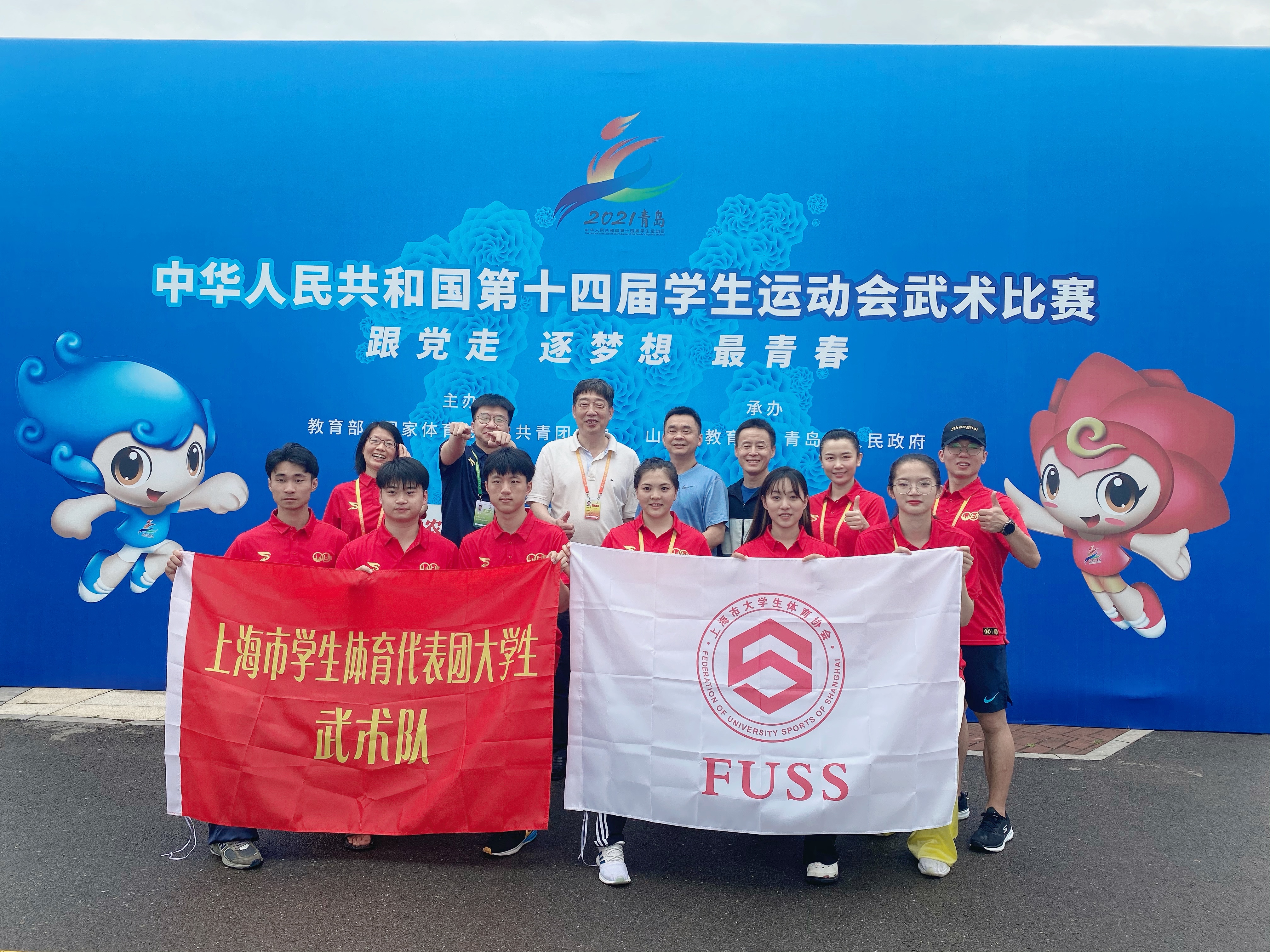 比赛期间,上海市代表团督导组组长姚颂平到赛场为选手们加油助威,同时向所有选手送上来自市委、市政府的关心和鼓励。由我校组队的上海市代表团大学组武术队发挥出色,斩获了3金3银1铜、团体总分第一、奖牌数第一的优异成绩。其中,我校运动员焦雯玥敢打敢拼,最终将女子刀术冠军、女子长拳亚军两枚奖牌收入囊中,为上海代表团和我校增添了荣誉。