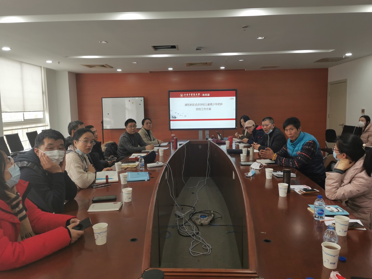 浦东新区疾控中心学校卫生与营养食品科主任柏品清介绍了此次活动的实施背景,超重肥胖已成为影响我国儿童青少年身心健康的重要公共卫生问题。儿童青少年期肥胖会增加成年期肥胖、心脑血管疾病和糖尿病等慢性病过早发生的风险,对健康造成威胁,给个人、家庭和社会带来沉重负担。为积极防控儿童青少年超重肥胖,拟在试点学校开展肥胖儿童综合干预。我校体育部教师徐划萍详细介绍了此次儿童肥胖防控工作方案的主要目标、干预措施、监测指标、质量控制、工作流程及进度等内容,并提出了需要协商讨论的几个问题。两个试点学校领导介绍了学校场地及学生体育锻炼的现状,存在场地严重不足、师资缺乏等问题。