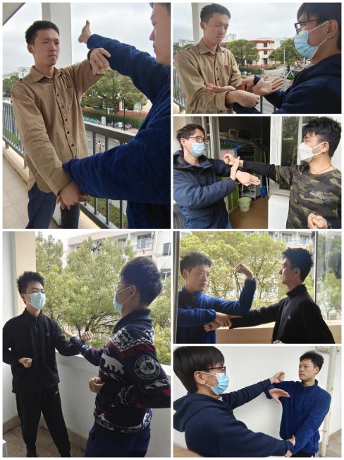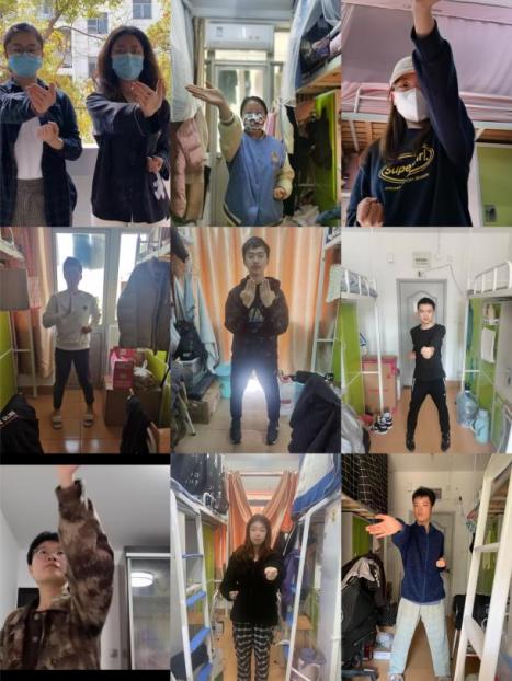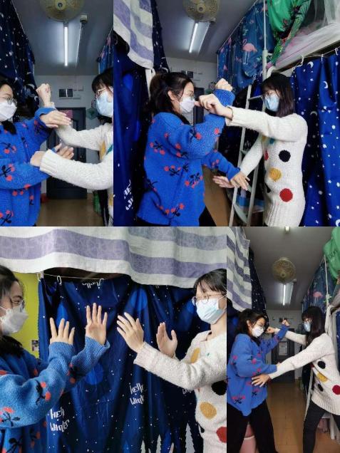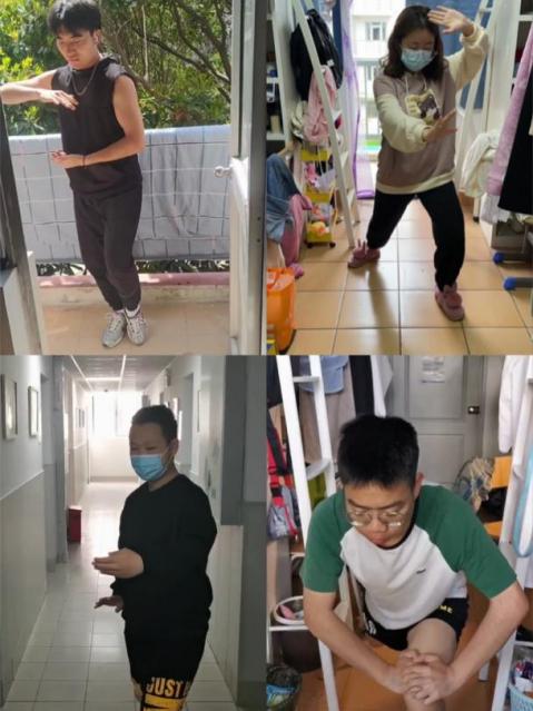 在全市疫情防控形势严峻复杂紧要关头,为坚决打赢疫情防控阻击战,牢固筑起校园健康安全防线,居寝隔离的同学们积极从自身开始做起,在宿舍或过道进行沉浸式自主锻炼,充分发挥“拳打卧牛之地”传统保健体育的运动特色,养成自主锻炼的意识和习惯。