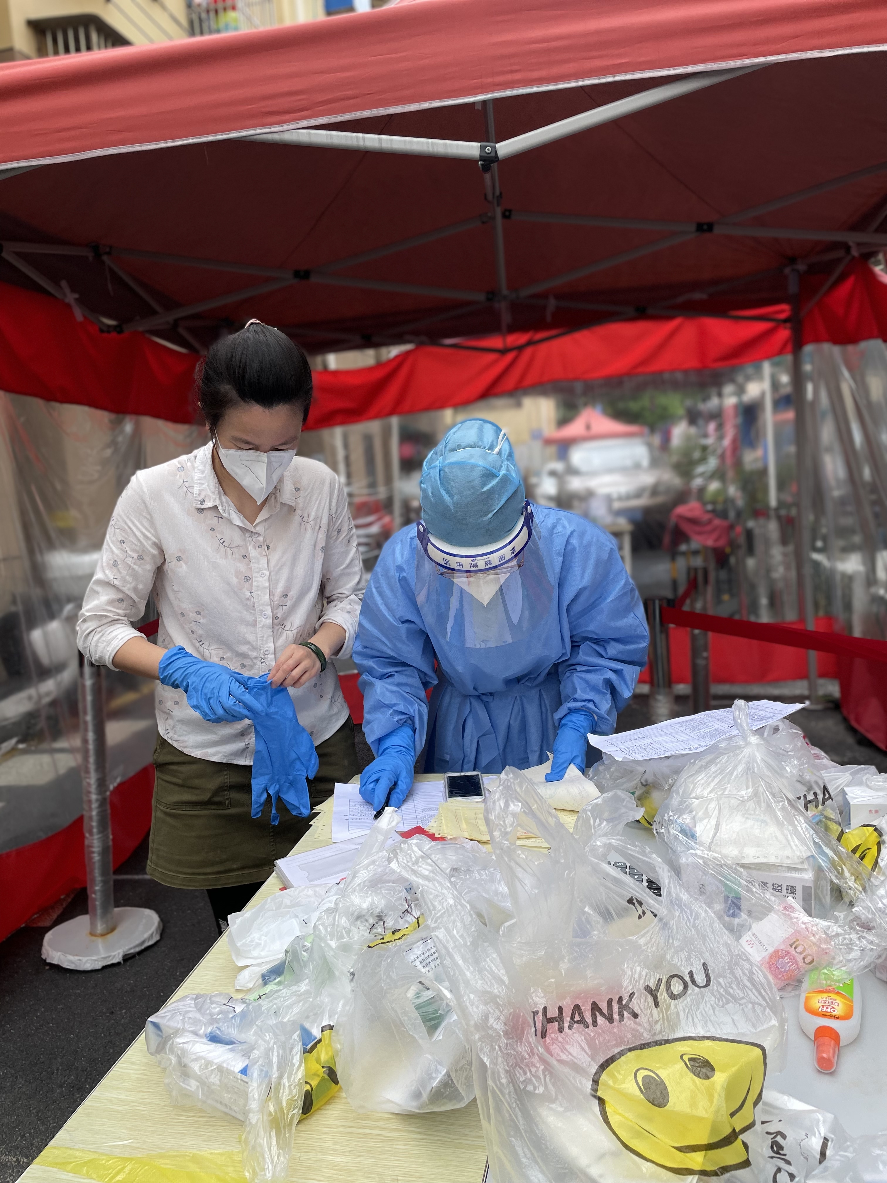 随着疫情升级,周边楼栋陆续成为“阳楼”,汪老师又协助楼组长阿姨组建楼道志愿者,共同参与楼道消杀、物资发放、三餐配送、垃圾收运、统计楼道物资紧缺情况等。当小区配药志愿者不幸“中招”,身为医务工作者的汪老师又主动请缨加入配药志愿者队伍。为了让居民们尽早拿到所配药物,汪老师每次都提前一晚整理清单,提前优化配送药流程,即配即送,中途滴水不进,错过饭点是常态。