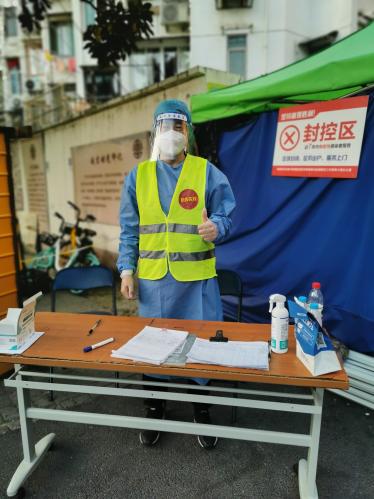 “哪里有需要,就到哪里去!”汪老师表示,在整个疫情期间,除了正常的教学之余,几乎把时间都铺在了疫情防控上,参与了不同角色的志愿者,希望为生活的楼道、小区、城市早日恢复往日的繁华和生机尽一份绵薄之力。