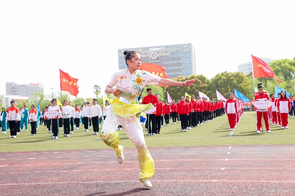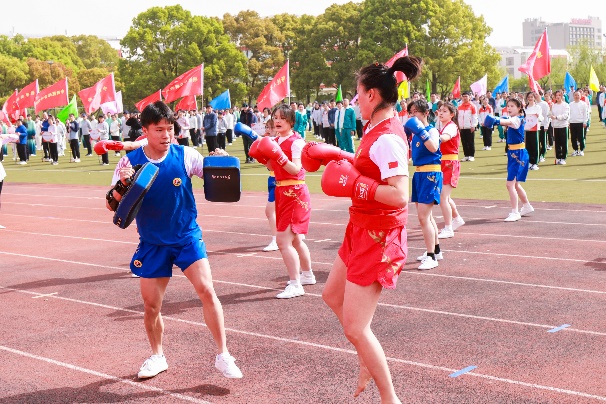 我部始终坚持“以体强身、以体润心”的教育理念,积极推动中华优秀传统文化传承创新,形成“传统体育+医养” “传统体育+文化”为特色的传统体育育人模式,取得良好成效。这次运动会现场活力四射、激情昂扬的体育项目展演也是开幕式上的一道独特风景。舞龙舞狮是中华优秀传统体育项目,这次由荣获2022年上海市最佳阳光活力校园年度最佳体育社团的舞龙舞狮队,用一龙一狮的形象舞出了杏林学子如龙一般的风采和如狮子一般的灵气。由健美操队带来的啦啦操坚持以“美育”为抓手,展现了青年学子健康向上的风采。散打是2022年的新增课程,由世界冠军蔡颖颖老师执教,队员们拳拳用力,步步生风,意气风发,挥斥方遒,展现出上中医青年的卓越风姿。被誉为最美体育项目的艺术体操不仅能提升身体素质,锻炼健美体态,还可以培养节奏感、优美感,提高音乐素养和表现力。成立于1978年的武术队在刚刚结束的2023年中国大学生武术套路锦标赛中斩获8金、4银、1铜的优异成绩,此次更是带来精彩纷呈的套路展示,激起了全场观众的热烈欢呼和高潮。