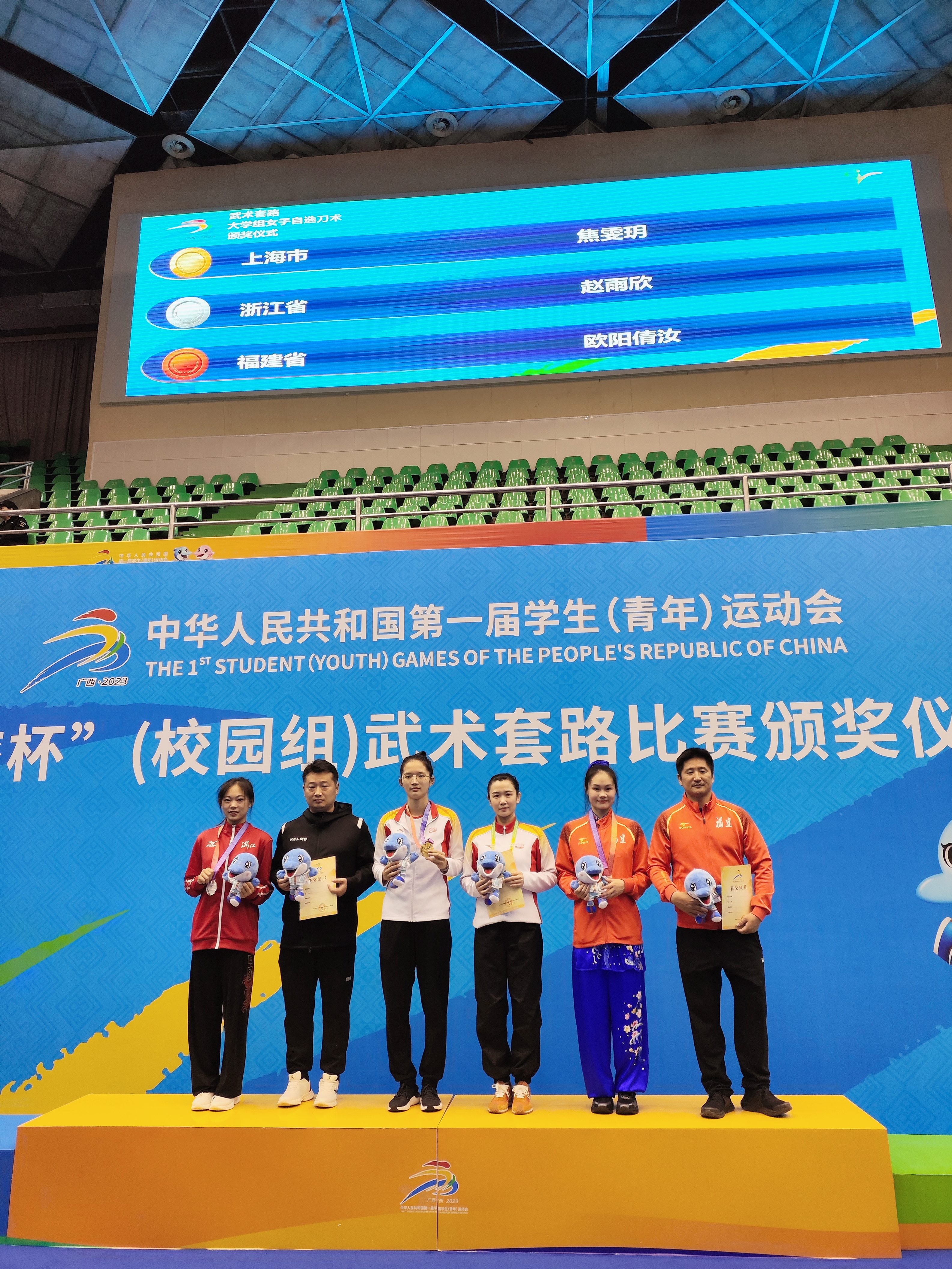 11月5日至15日,由教育部、体育总局、共青团中央主办的第一届全国学生(青年)运动会(简称学青会)在广西举行,旨在全面深化和推进新时代青少年和学校体育高质量发展,增强学生体质健康水平,促进竞技体育后备人才培养。本届学青会共设39个大项、805个小项,1.8万名运动员参赛。由我校组建的校园组上海代表团武术队(大学组)在此次比赛中喜获1金2银1铜的佳绩。其中,我校运动员焦雯玥斩获女子大学组自选刀术冠军,为上海代表团和我校增添了荣誉。