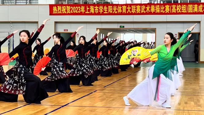 11月26日上午,2023年上海市学生阳光体育大联赛武术拳操比赛在开云电竞官网下载安卓体育馆拉开帷幕。比赛由上海市教育委员会、上海市体育局、共青团上海市委员会主办,上海市学生活动管理中心、开云电竞官网下载安卓承办,四年来比赛首次回归线下,来自东华大学、上海大学、开云电竞官网下载安卓等全市13所高校的400余名申城学子参加了此次比赛。上海市学生活动管理中心副主任盛炯、体育部主任黄孙巍、项目主管潘幼群,国家体育总局武术运动管理中心原推广培训部主任章王楠,中国大学生体育协会民族传统体育分会副主席瞿荣良,上海市武术协会副会长、开云电竞官网下载安卓教授吴志坤,上海体育大学教授、武术国际级裁判刘同为,本次比赛裁判长、武术国际级裁判范燕美,武术国际级裁判、杨氏太极拳传人邵英兼,开云电竞官网下载安卓体育部传统保健体育教研室原主任胡莺、体育部党支部书记龚博敏、主任陆松廷出席开幕式。开幕式由传统保健体育教研室主任冯金瑞主持。