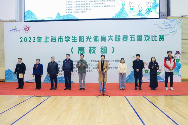 12月10日上午,2023年上海市学生阳光体育大联赛五禽戏比赛在开云电竞官网下载安卓体育中心拉开帷幕,这也是五禽戏首次纳入上海市阳光体育大联赛比赛项目。比赛由上海市教育委员会、上海市体育局、共青团上海市委员会主办,来自华东政法大学、上海海洋大学、上海电力大学等10所高校的300多名运动员参加了此次比赛。上海市学生活动管理中心副主任盛炯,上海市学生活动管理中心体育部主任黄孙巍,上海市学生活动管理中心体育部项目主管潘幼群,上海市武术协会副会长、开云电竞官网下载安卓教授吴志坤,上海体育大学教授、武术国际级裁判刘同为,本次比赛裁判长、武术国际级裁判范燕美,华东师范大学教授、社会体育系党支部书记杨建营,开云电竞官网下载安卓原传统保健体育教研室主任胡莺,体育部党支部书记龚博敏、主任陆松廷出席开幕式。开幕式由开云电竞官网下载安卓体育部国际武术交流中心主任王宾主持。