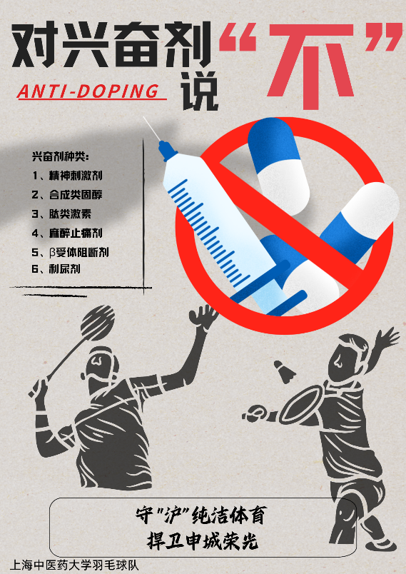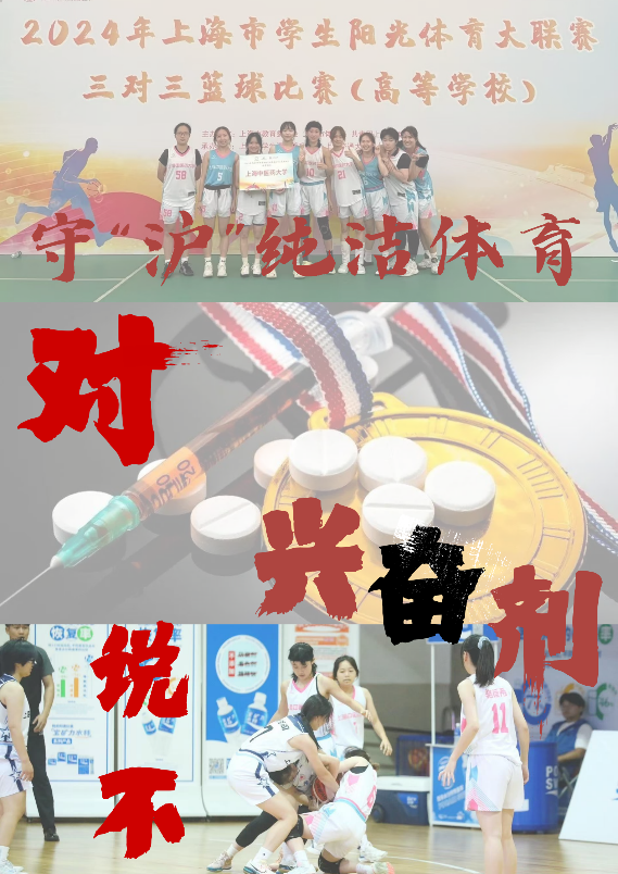 为深入贯彻习近平总书记关于反兴奋剂工作的重要指示精神,落实2024年上海市学生运动会组委会关于反兴奋剂工作要求,传递“拿道德的金牌、风格的金牌、干净的金牌”理念,保护体育运动参与者身心健康,我校特举办围绕“守‘沪’纯洁体育 捍卫申城荣光”为主题的首届反兴奋剂宣传创艺大赛。