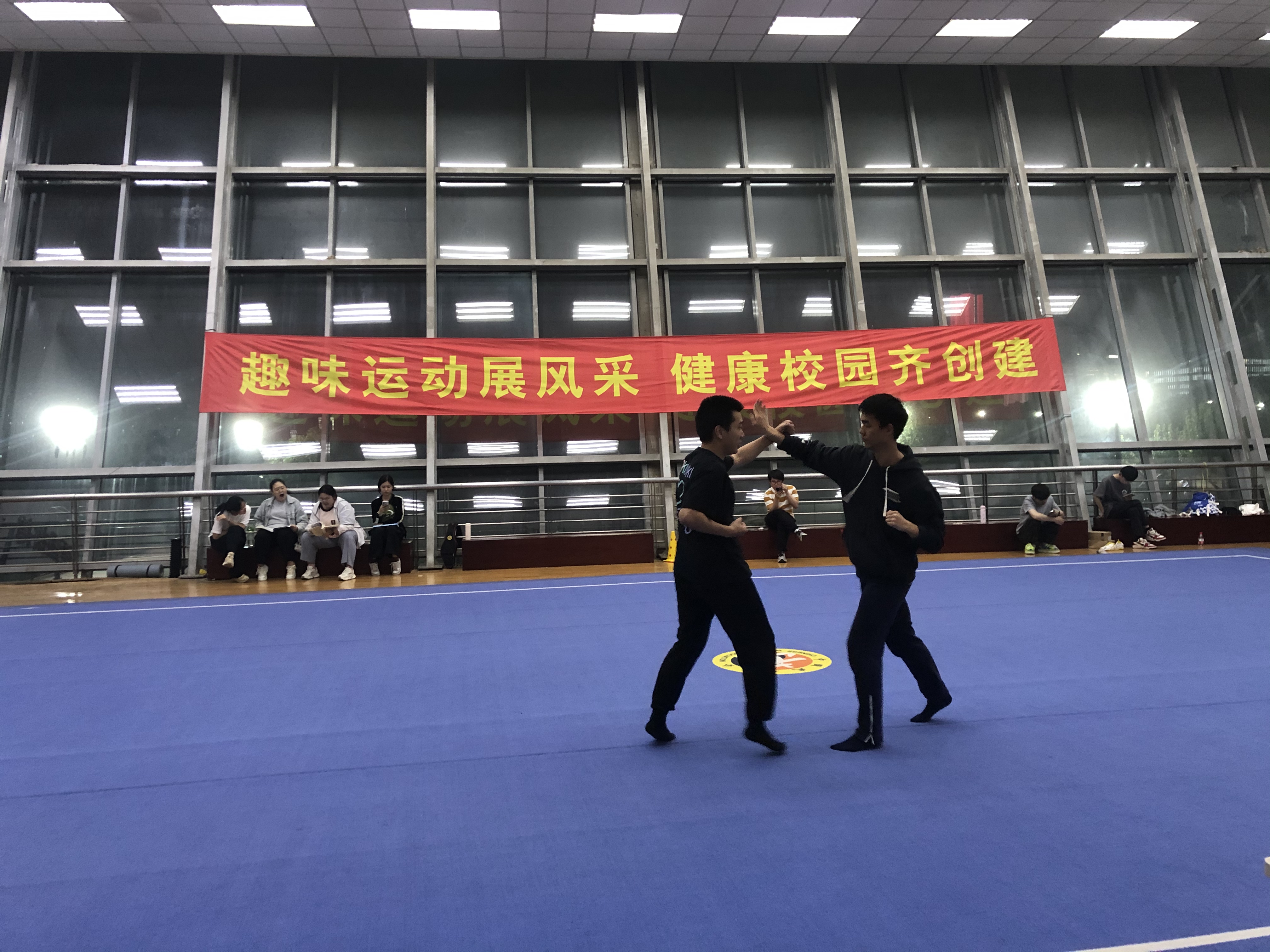 2025年4月23日18:00,开云电竞官网下载安卓体育中心二楼武术训练馆内,气氛热烈非凡。一场传统武术的盛宴——开云电竞官网下载安卓咏春拳比赛在此激情上演。本次赛事由开云电竞官网下载安卓团委与体育部联合主办,健身功法社・岐黄咏春部精心承办,旨在充分发挥学校以体育人功能,传承中华优秀传统文化,为学生提供展现武术风采的舞台。体育部王宾老师、刘佳丽老师担任专业评委。近五十名学生踊跃参赛,现场氛围热烈,喝彩声此起彼伏。