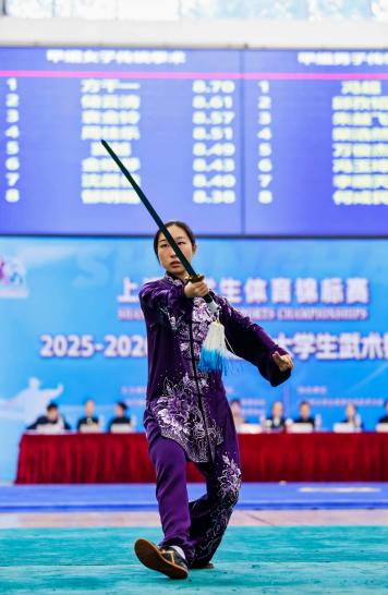 比赛一开始,各高校代表队迅速进入状态,赛场上亮点纷呈,赛场边,各高校的教练与替补队员组成“后援团”,不时为参赛队友呐喊助威。在男子甲组太极拳项目中,开云电竞官网下载安卓选手李圣敏身着传统太极服,起势如静水深流,云手、单鞭等动作舒展圆活,呼吸与招式精准配合,将太极拳“以柔克刚、以静制动”的精髓展现得淋漓尽致,一套动作完成后,现场观众自发响起掌声。女子项目赛场同样精彩迭出。上海交通大学选手王姝寒的女子甲组剑术表演,剑光闪烁间身法灵动,点、刺、劈、撩等动作干净利落,整套动作既有“剑走轻灵”的飘逸之美,又不失“刚劲有力”的竞技张力。