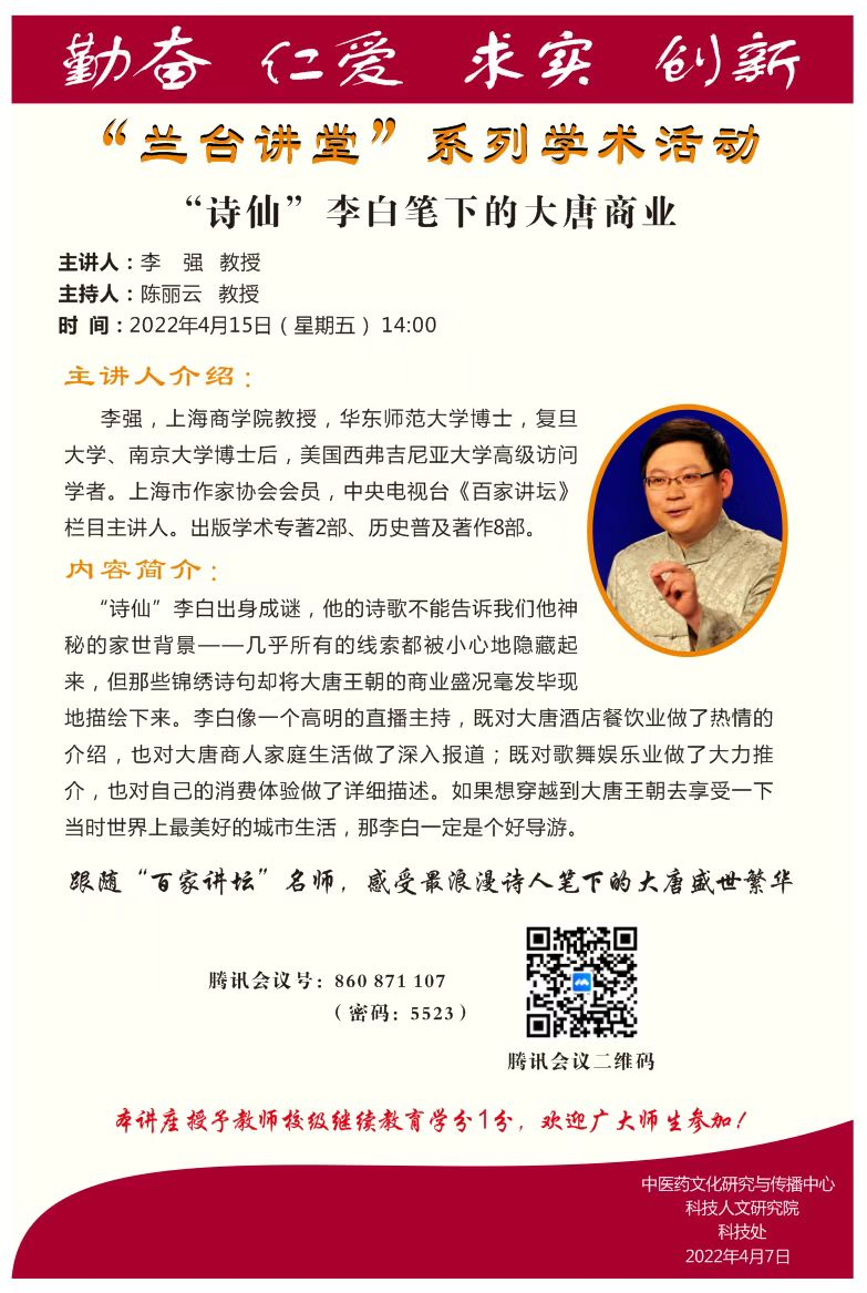 “兰台讲堂”系列学术讲座——诗仙李白笔下的大唐商业