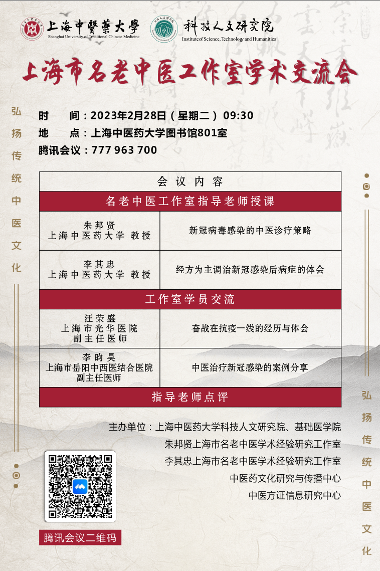 会议预告| 李其忠、朱邦贤上海市名老中医工作室学术经验交流会
