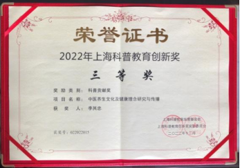 李其忠教授在长期潜心学术研究、人才培养的同时,始终心系中医药科普,并在中医药科普领域取得了丰硕成果。先后出版中医养生科普书籍十余部,并在相关报刊杂志上开辟“养生古训”“养生杂谈”等专栏,发表中医养生科普文章百余篇。经常应邀到到高校、机关、企业、社区作养生知识讲座,并担任多家电视台养生类节目嘉宾。新冠疫情期间,主动多渠道宣传中医中药防治理念和方法。2018年荣获由中华医学会科普分会与《大众医学》杂志颁发的“医学科普突出贡献奖”;作为主要参与人的“面向青少年的中医药系列科普读物”,包括丛书、微课程、儿童读物,2020年4月荣获上海市人民政府颁发的“上海市科学技术奖一等奖”;2020年5月中医药进校园系列科普读物,荣获中华中医药学会科普著作三等奖。2021年荣获上海市教委“为人、为师、为学”先进典型。