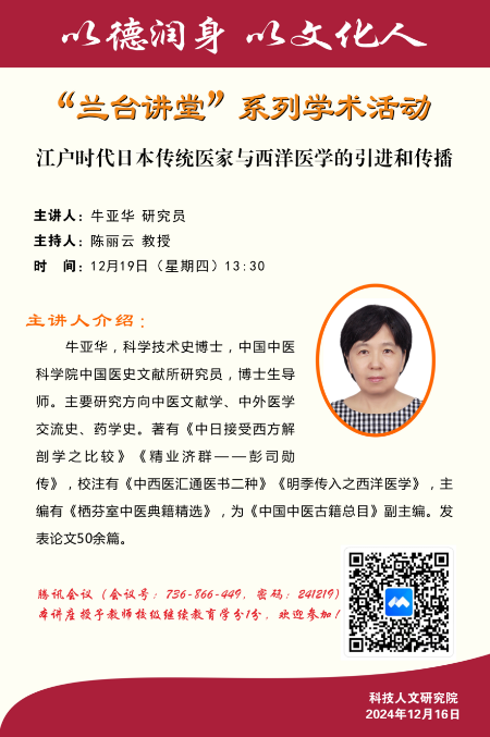 讲座预告:江户时代日本传统医家与西洋医学的引进和传播