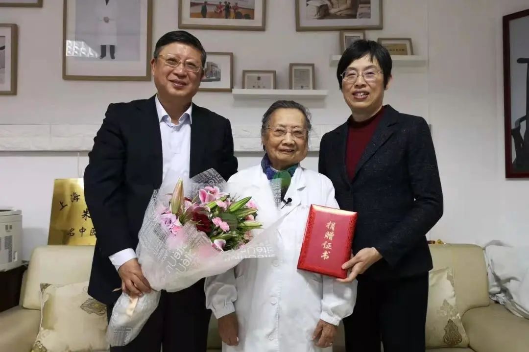 曹锡康、徐建光向朱南孙赠送了由102岁国医大师路志正和上海著名书法家周思言所作字画“百岁芬芳”“女科昆仑”,感谢她尽其所能将毕生所学毫无保留地传授给后人,培养了一大批中医妇科高级人才,为中医药教育事业作出巨大贡献。