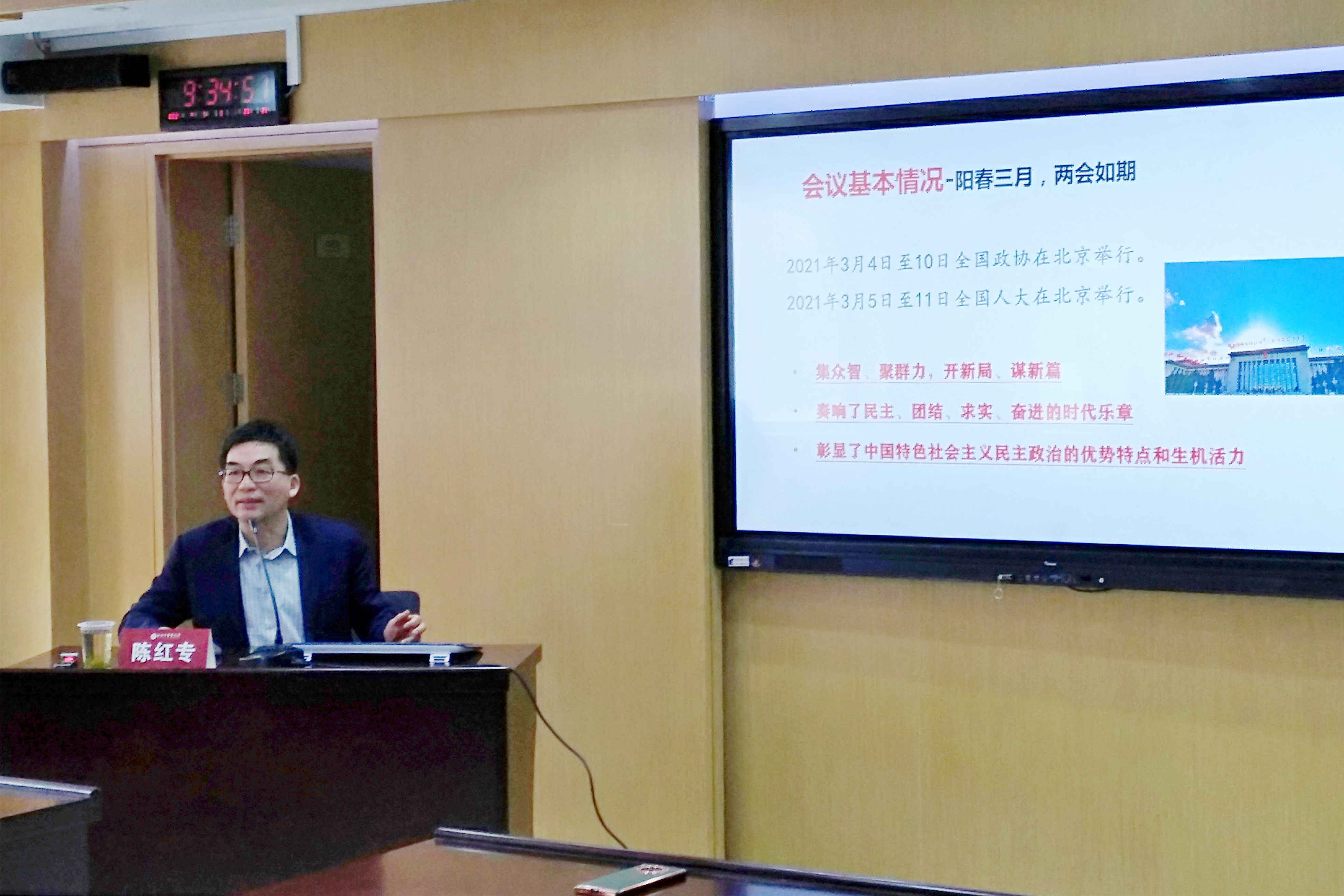 全国政协委员、我校副校长陈红专以“贯彻新发展理念,融入新发展格局”为题交流参加全国两会的感受和感悟。他主要围绕全国两会基本内容、主要精神和个人履职资政情况等方面介绍了全国两会的情况,传达了习近平总书记在全国政协医药卫生界、教育界委员联组会上发表的重要讲话精神,以及部分全国政协委员的发言情况,重点介绍了医药卫生领域的提案内容。